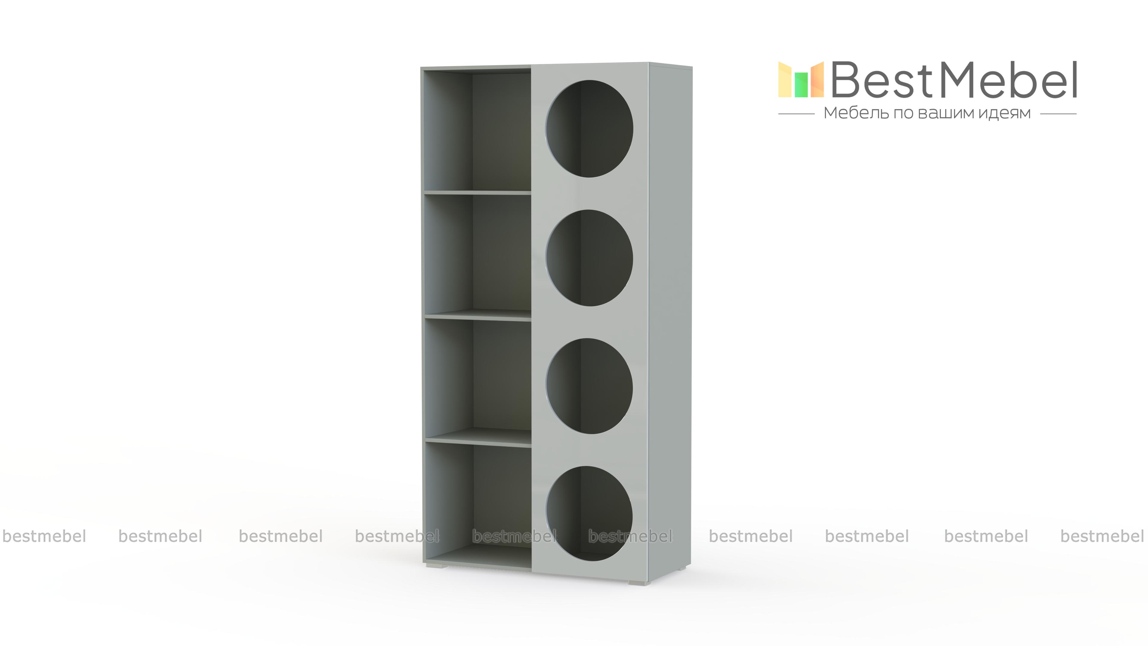 Стеллаж Авелин 11 BMS со светлым фасадом поможет создать эстетичный и функциональный интерьер в детской комнате или гостиной. На открытых полках и закрытых фасадом с круглыми вырезами всегда в доступе книги, рабочие материалы, красивая посуда и органайзеры с мелочами. При необходимости стеллаж легко комбинируется с другими предметами молодежной коллекции. Купить стеллаж Авелин 11 BMS с размерами и цветом по выбору вы сможете недорого на сайте нашего интернет-магазина.