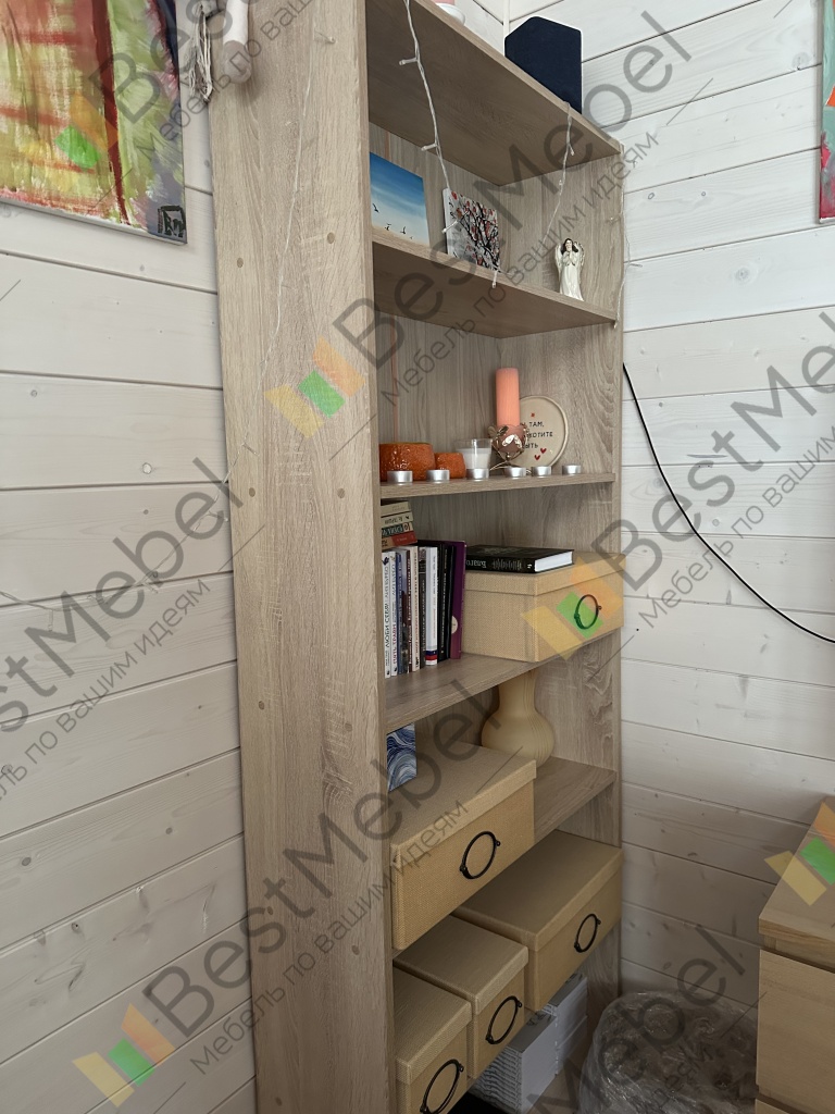 Заказ 00000267739Отличный стеллаж: крепкий, собирается элементарно. Сделали по индивидуальным параметрам, так что он идеально вписался в пространство между шкафами.