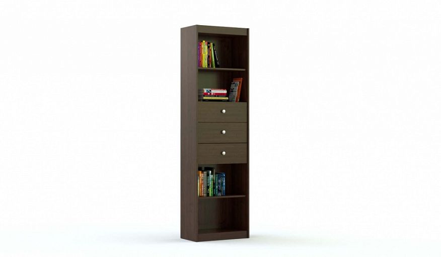 Стеллаж Боб 5 BMS – это элегантная современная модель для меблировки гостиных и рабочих кабинетов. Высокий комбинированный стеллаж оборудован четырьмя открытыми секциями для книг и декоративных предметов и тремя выдвижными ящиками, удобными для хранения необходимых под рукой мелочей. Модель с чуть утопленным фасадом выполнена в насыщенных древесных тонах и делает интерьер уютнее. Купить стеллаж Боб 5 BMS приглашаем в наш интернет-магазин по выгодной цене.