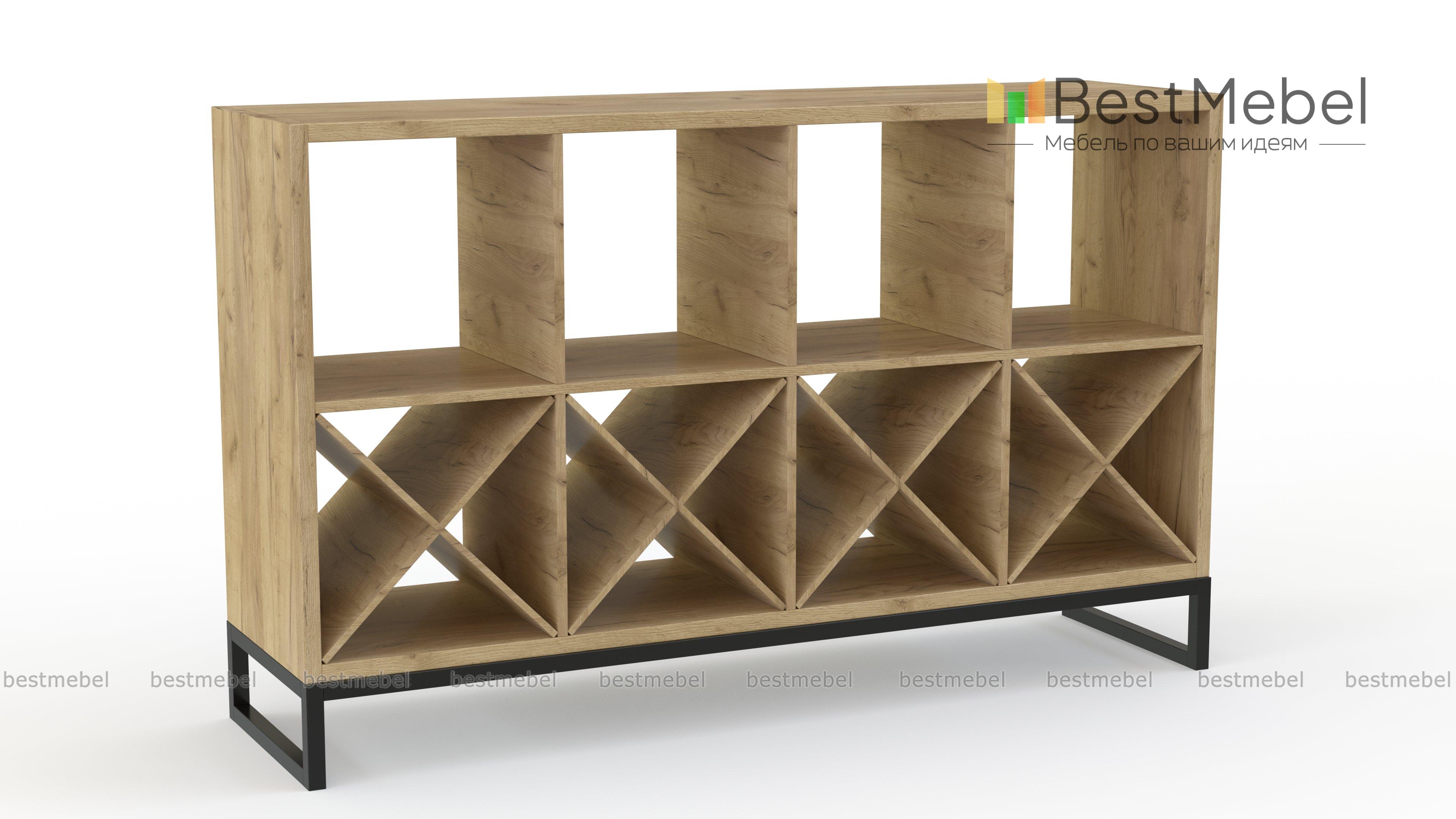 Стеллаж Лорис 10 BMS, оборудованный прямыми и диагональными полками, станет прекрасным дополнением уютного лофта. Вы сможете компактно расположить посуду, книги, декоративные предметы и небольшую коллекцию алкоголя. Природные древесные оттенки корпуса создают теплую атмосферу в помещении, а контрастное металлическое основание обеспечивает стеллажу прочность и внешнюю легкость. Купить стеллаж Лорис 10 BMS вы сможете в нашем интернет-магазине с учетом необходимых размеров.