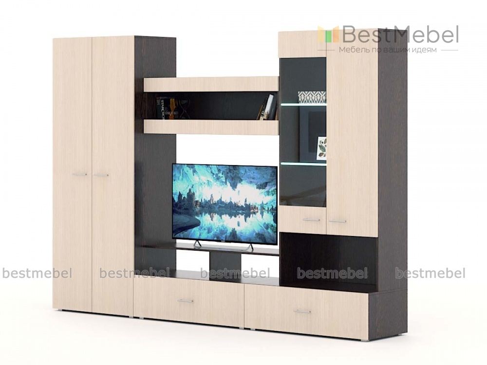 Стенка для гостиной Ненси-1 BMS отличается современным дизайном и органично впишется в помещения стиля минимализм. Такая модель, не только эффектна, но и поможет организовать комфортное пространство. Стенка оборудована двухдверным шкафом с полками, тумбой под ТВ с выдвижными ящиками, навесной секцией, нишами и просторной витриной. Купить стенку для гостиной Ненси-1 BMS, подобрав оптимальное цветовое решение, вы сможете в нашем интернет-магазине.
