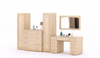 Стенка Элис 3К BMS представляет собой модульную композицию в элегантном классическом стиле. Универсальное решение для гостиных и спален, гарнитур включает в себя два бельевых пенала, вместительный комод и дополненный навесным зеркалом туалетный столик с выдвижными ящиками для мелочей. Фрезерованные рамочные фасады выполнены в светлых древесных тонах. Купить стенку Элис 3К BMS и создать одновременно эстетичный и функциональный интерьер вам всегда поможет наш интернет-магазин.