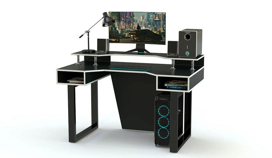 Геймерский стол Буэно-6 BMS позволит вам максимально освободить рабочую поверхность от лишних предметов и сосредоточиться на игре. Модель оборудована эргономичной столешницей с надстройкой под монитор и периферийные устройства, а также двумя открытыми боковыми секциями. Благодаря рамочным опорам и скошенной задней стенке стол отличается легкостью, но при этом надежностью и устойчивостью. Купить геймерский стол Буэно-6 BMS для комфортного современного интерьера приглашаем в наш интернет-магазин.