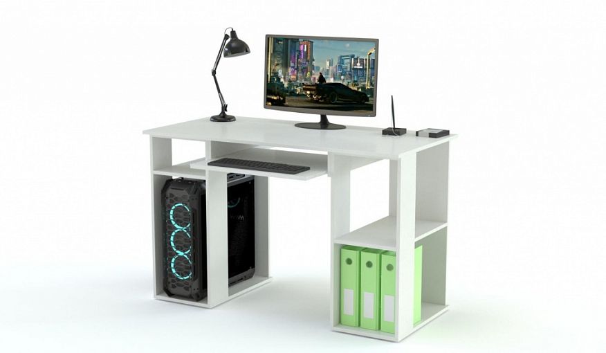 Компьютерный стол Флеш 45 BMS не имеет выдвижных ящиков и закрытых секций, в нем все на виду. Это позволит легко находить все нужное, придает изделию легкость, не загромождает пространства помещения. На просторной столешнице можно выполнять письменные работы, хватит на ней места и для установки принтера или сканера. Клавиатура спрятана под рабочей зоной и выкатывается на роликах специальной полочки. Системный блок имеет штатное место, которое хорошо вентилируется, и не вызовет его перегрева. Можно оформить заказ изделия в правом или левом исполнении. Недорогой качественный стол для дома или офиса предлагаем заказать на нашем сайте. Мы обеспечим быстрое и профессиональное изготовление в самые короткие сроки и бесплатную доставку.