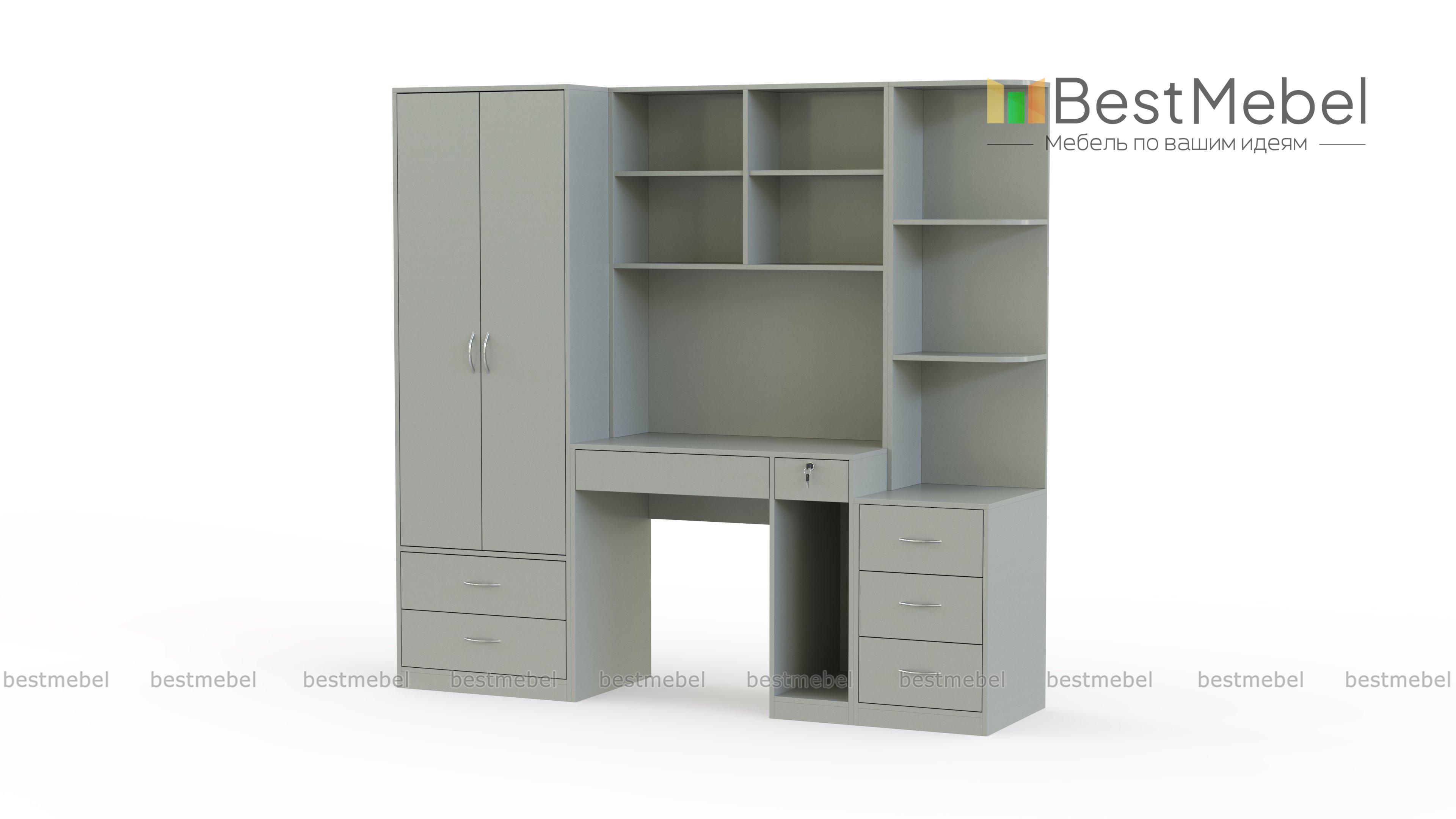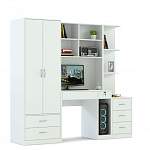 Компьютерный стол Марта 4 BMS дополнен продуманной системой хранения и будет особенно актуален в малогабаритных помещениях. В центре композиции располагается компьютерный столик с книжными полками и банкеткой, а по бокам – двухдверный платяной шкаф с выдвижными ящиками в основании и секция с тумбой и открытыми полками для разнообразных мелочей и предметов декора. Купить компьютерный стол Марта 4 BMS, выполненный в универсальном белом цвете, вы сможете в нашем интернет-магазине по доступной цене.