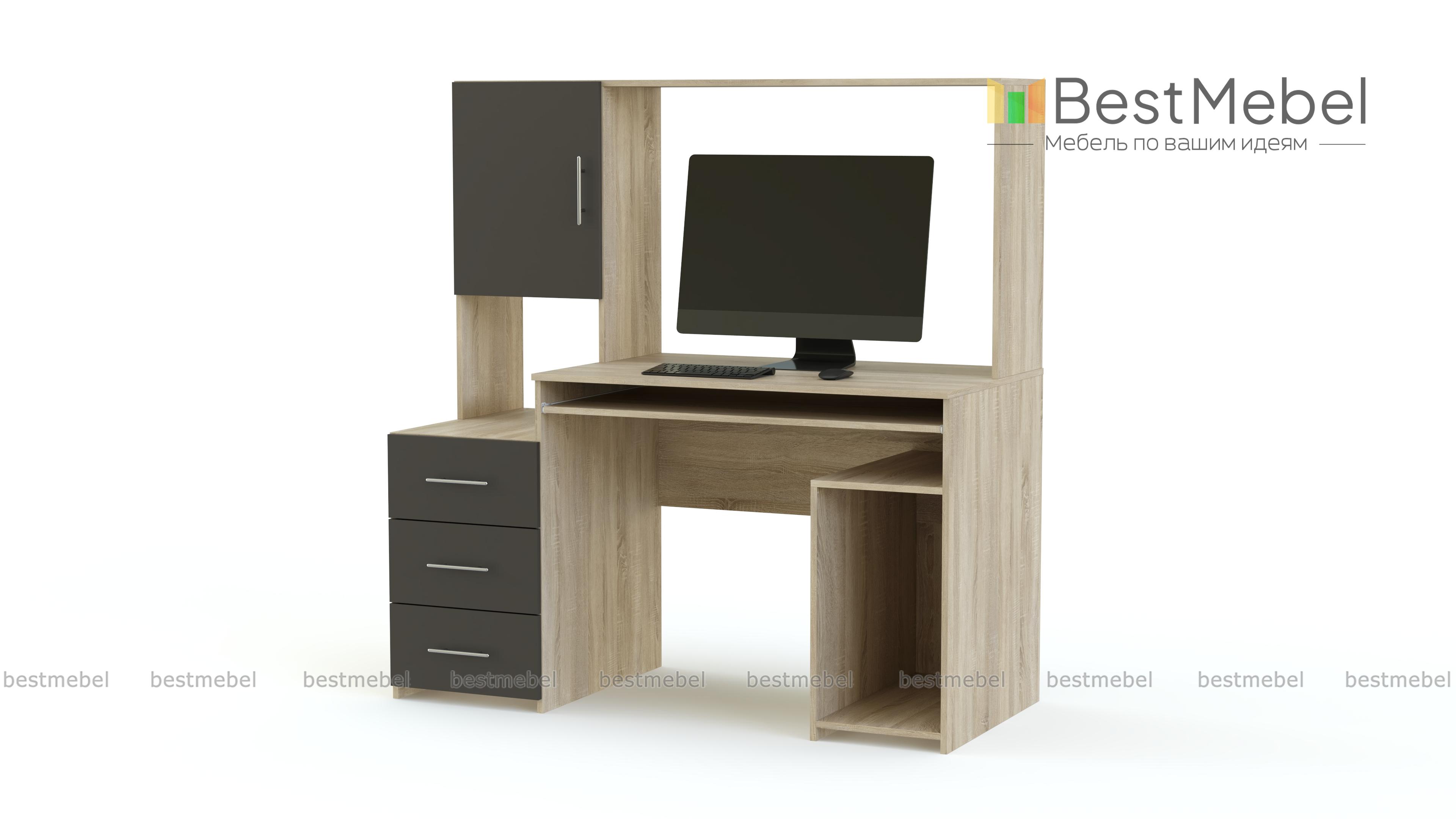 Стол понравился. Выбирал из вариантов, на полку которого можно поставить принтер и удобно им пользоваться. Заказывали с кромками 2 мм. Остальные материалы без доплаты. Качество отличное.Собирал сам, одной стяжки обычной не хватило в комплекте , видимо, это стандарт во всех мебельных магазинах :) (уже был готов к такому повороту).В задней стенке места установки компьютера делал выпил для вентиляции (наверное, со сборщиком тоже можно договориться при желании).В комплекте идут пластиковые подпятники, цвет которых выбрать нельзя - это минус небольшой.