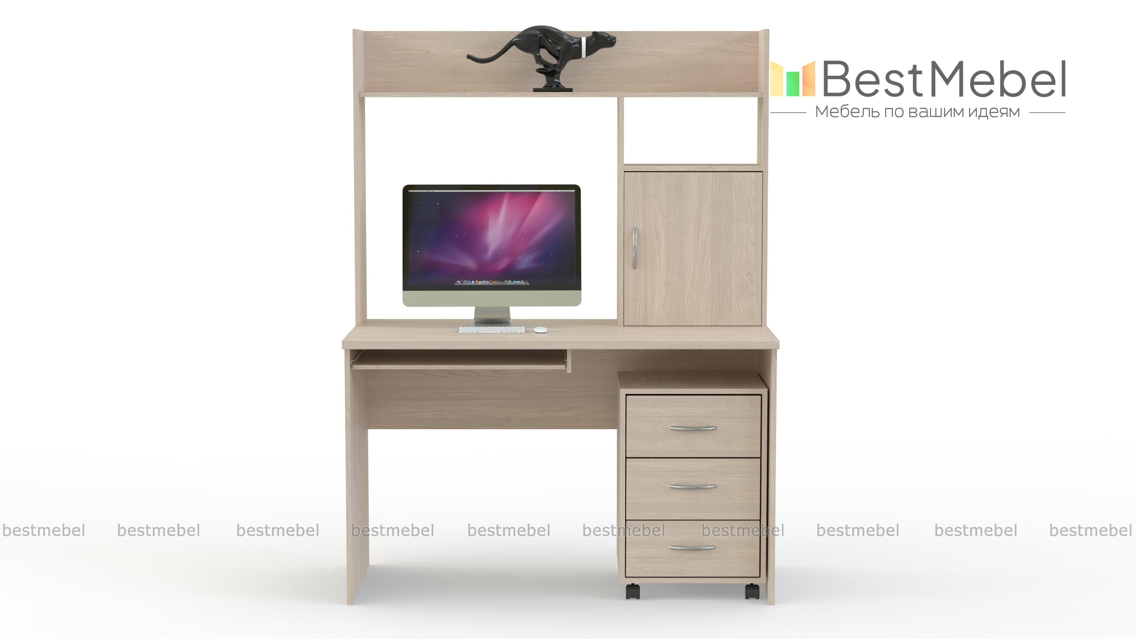 Компьютерный стол Вероника-36 BMS поможет оборудовать эргономичное рабочее место. Прямоугольная столешница дополнена выдвижной панелью для клавиатуры и надстройкой с нишей под монитор, распашным отделением и полкой для оргтехники, книг или предметов декора. Для хранения канцелярских принадлежностей в комплект входит мобильная тумба с тремя выдвижными ящиками. Выполненный в нейтральных древесных тонах, стол универсален и легко впишется в меблировку разного типа. Купить компьютерный стол Вероника-36 BMS по доступной цене приглашаем в наш интернет-магазин.