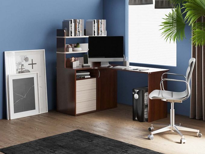 Большая модель компьютерного углового стола включает в себя широкую рабочую поверхность, боковой шкаф для книг, документов и т.д. Стол отлично подойдет для учащихся, офисных работников и активных компьютерных пользователей. Модель стильная и современная. Оригинальный и продуманный дизайн наверняка Вас заинтересует. При желании базовые размеры модели можно увеличить или уменьшить и купить подходящий для Вас вариант.