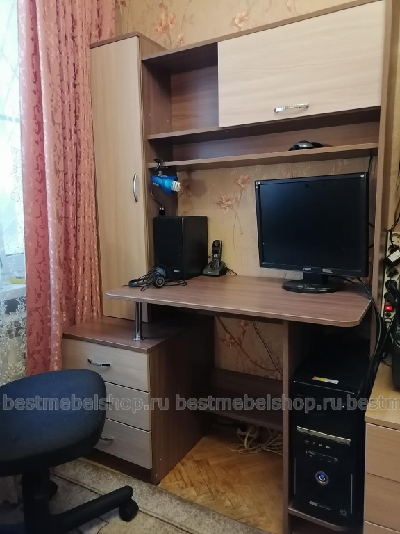 Симпатичный , аккуратный , удобный. Сделали быстро. На почту прислали эскиз .Добавили пару полочек по моему желанию .Правда забыли полку под клавиатуру , но обещали в ближайшее время привезти .Спасибо !