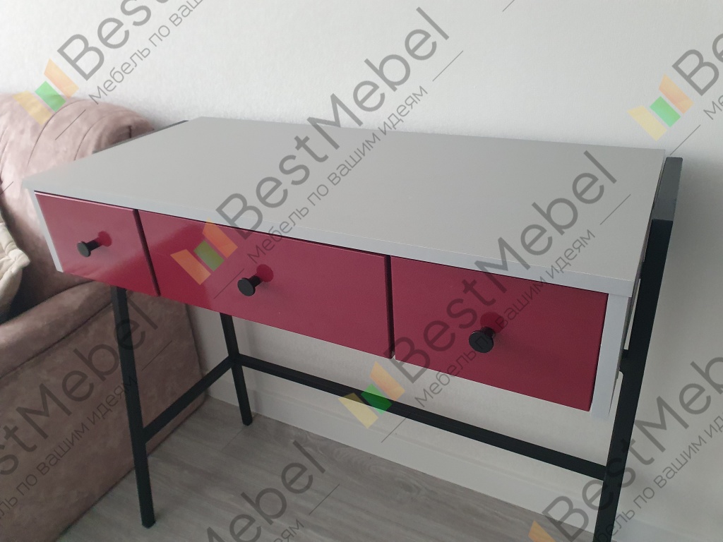 Консольный стол Хлоя 14 BMS лаконичен и прекрасно вписывается в интерьеры стиля минимализм, сканди или индастриал. Эффектная консоль, выполненная из ЛДСП в нейтральных цветах, располагается на легком металлическом каркасе с трапециевидными опорами. Широкая столешница и выдвижные ящики помогут разместить под рукой все необходимые уходовые средства и аксессуары, а также предметы декора. Купить консольный стол Хлоя 14 BMS с выбором цвета и размеров вы сможете в нашем интернет-магазине.