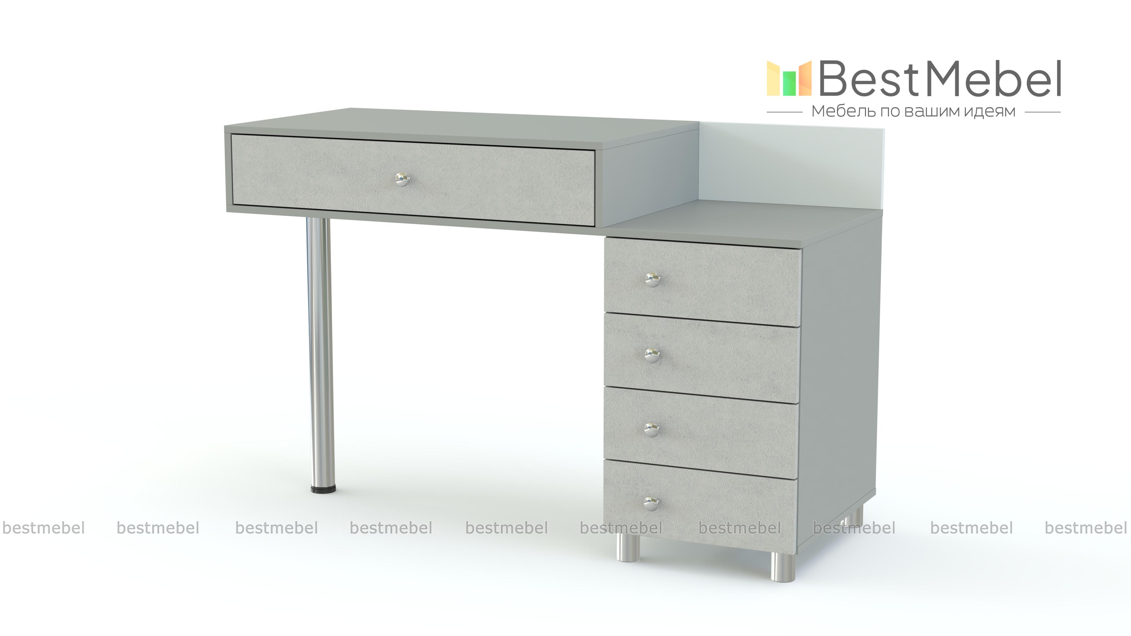 Маникюрный стол Браун BMS – это оригинальный современный дизайн и большое количество мест для хранения. Модель, выполненная в контрастной серо-белой гамме, гармонично впишется в интерьер современного салона. Лаконичная консоль с широким выдвижным ящиком для необходимых под рукой мелочей дополнена вместительной тумбой с четырьмя ящиками. Устойчивость и легкость конструкции придают регулируемые металлические опоры. Купить маникюрный стол Браун BMS приглашаем в наш интернет-магазин по лучшей цене.