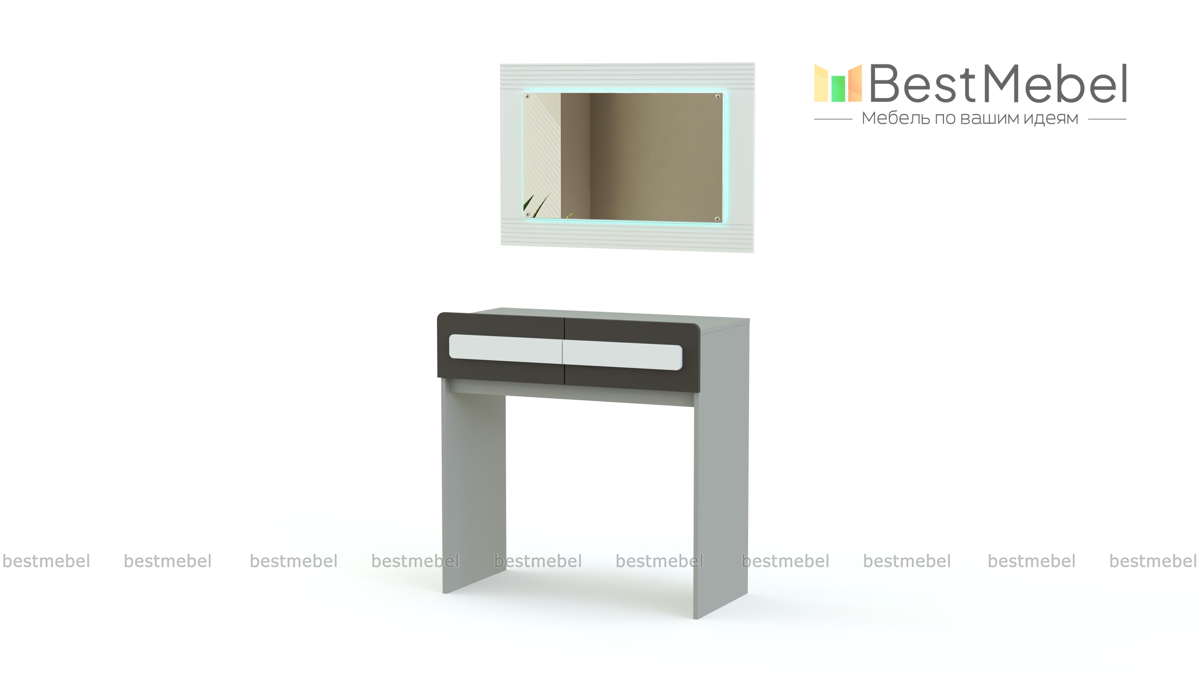 Стол туалетный с подсветкой Париж BMS отличается элегантным современным дизайном и компактными размерами, оптимальными для небольших спален. Композиция включает в себя столик с удобной для размещения косметики и аксессуаров столешницей и двумя выдвижными ящиками, а также незаменимое для ухода за собой навесное зеркало в широкой рельефной раме. Строгие линии эффектно подчеркивает контрастная черно-белая гамма. Купить стол туалетный с подсветкой Париж BMS приглашаем недорого в наш интернет-магазин.