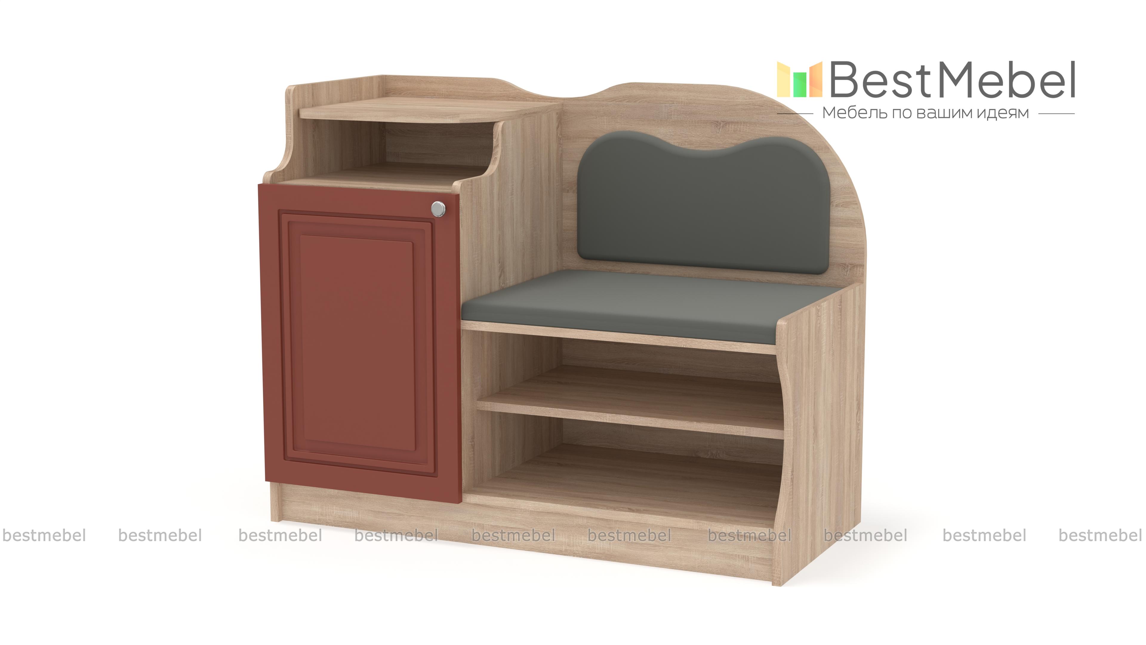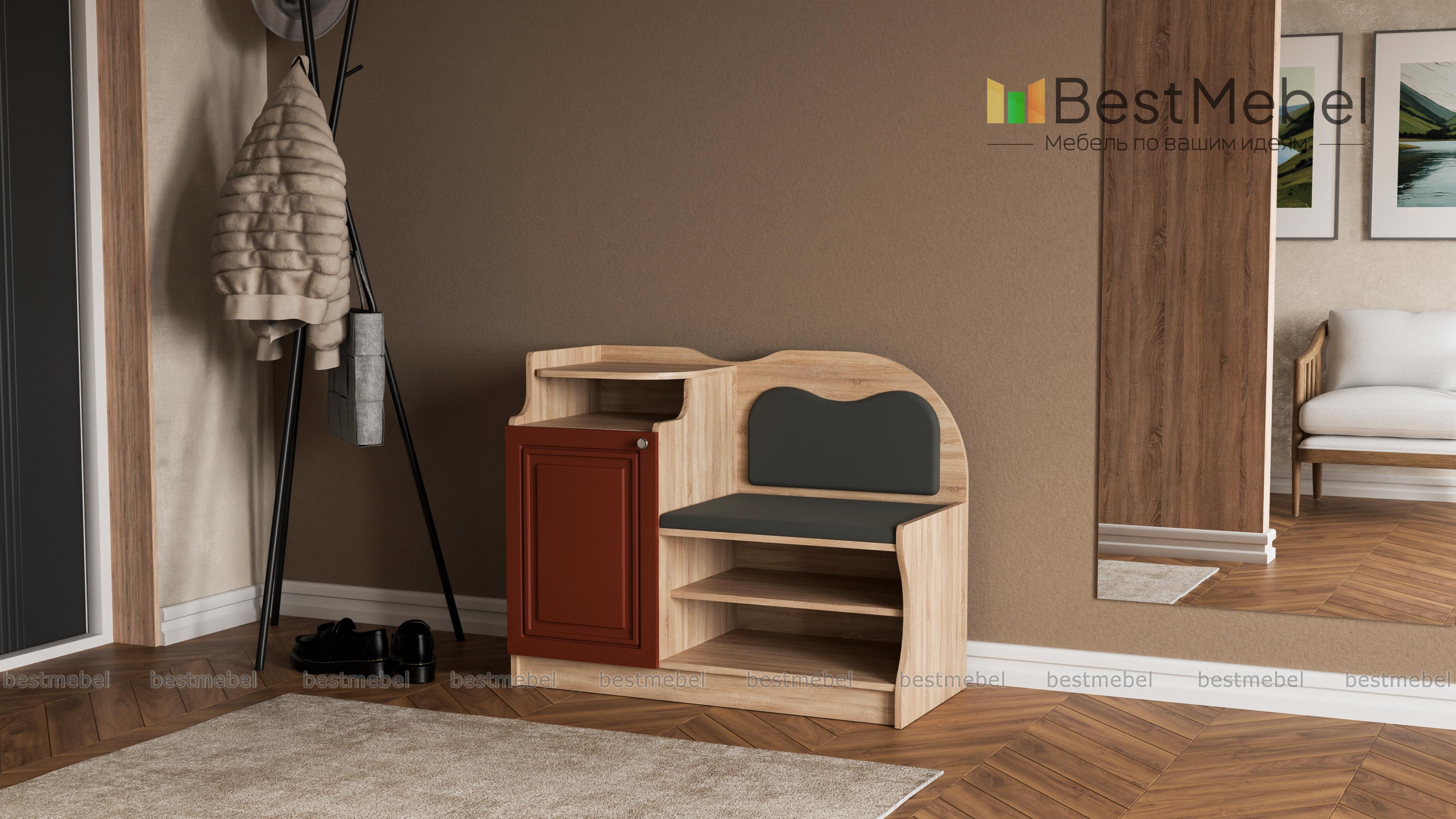 Тумба-банкетка под телефон № 1 BMS станет выбором тех, кто предпочитает классические варианты, и гармонично дополнит традиционные интерьеры. Модель в насыщенных темных тонах отличается уютным декором, сочетая фигурно вырезанные элементы и фрезеровку. Для хранения сезонной обуви предусмотрены открытые полки, а необходимые под рукой мелочи и стационарный телефон разместятся благодаря тумбе с распашным отделением и открытой полкой. Комфортное сиденье в ткани дополняет высокая спинка также с мягкой обивкой. Купить тумбу-банкетку под телефон № 1 BMS приглашаем в наш интернет-магазин.