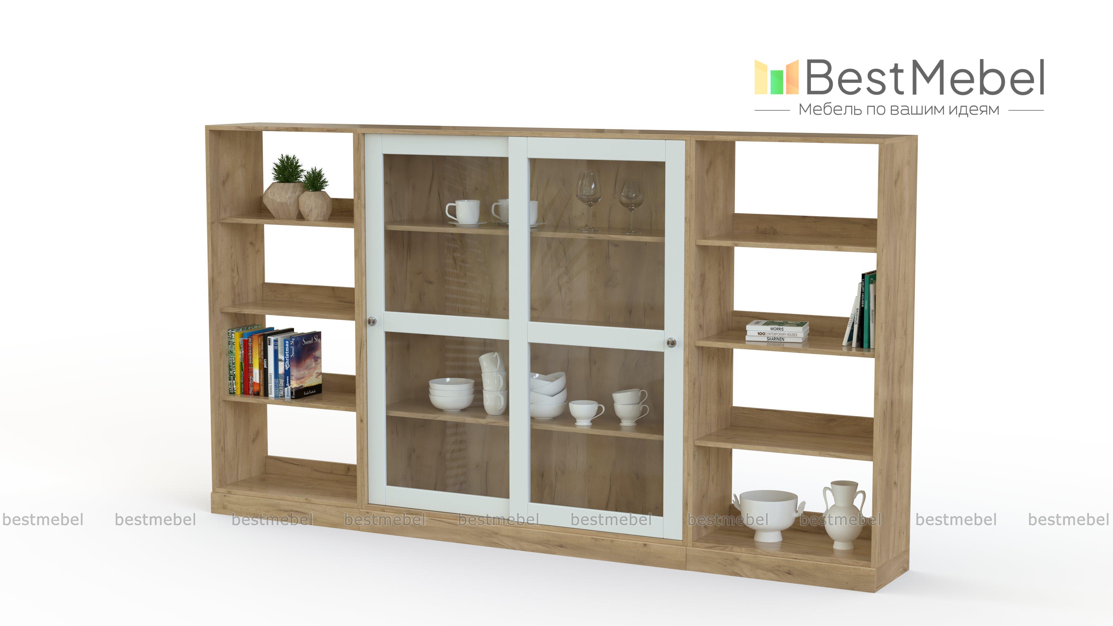 Тумба Ханта 6 BMS – широкая составная модель для интерьеров в скандинавском стиле. В центре композиции располагается витрина с практичными раздвижными дверцами, по бокам – стеллажи для книг и разнообразных бытовых вещей, а подставкой для предметов декора станет просторная столешница. Выполненная в контрастных тонах, тумба отличается строгими четкими линиями, надежностью и функциональностью. Купить тумбу Ханта 6 BMS, уместную в гостиной, спальне или столовой, приглашаем к нам в интернет-магазин.