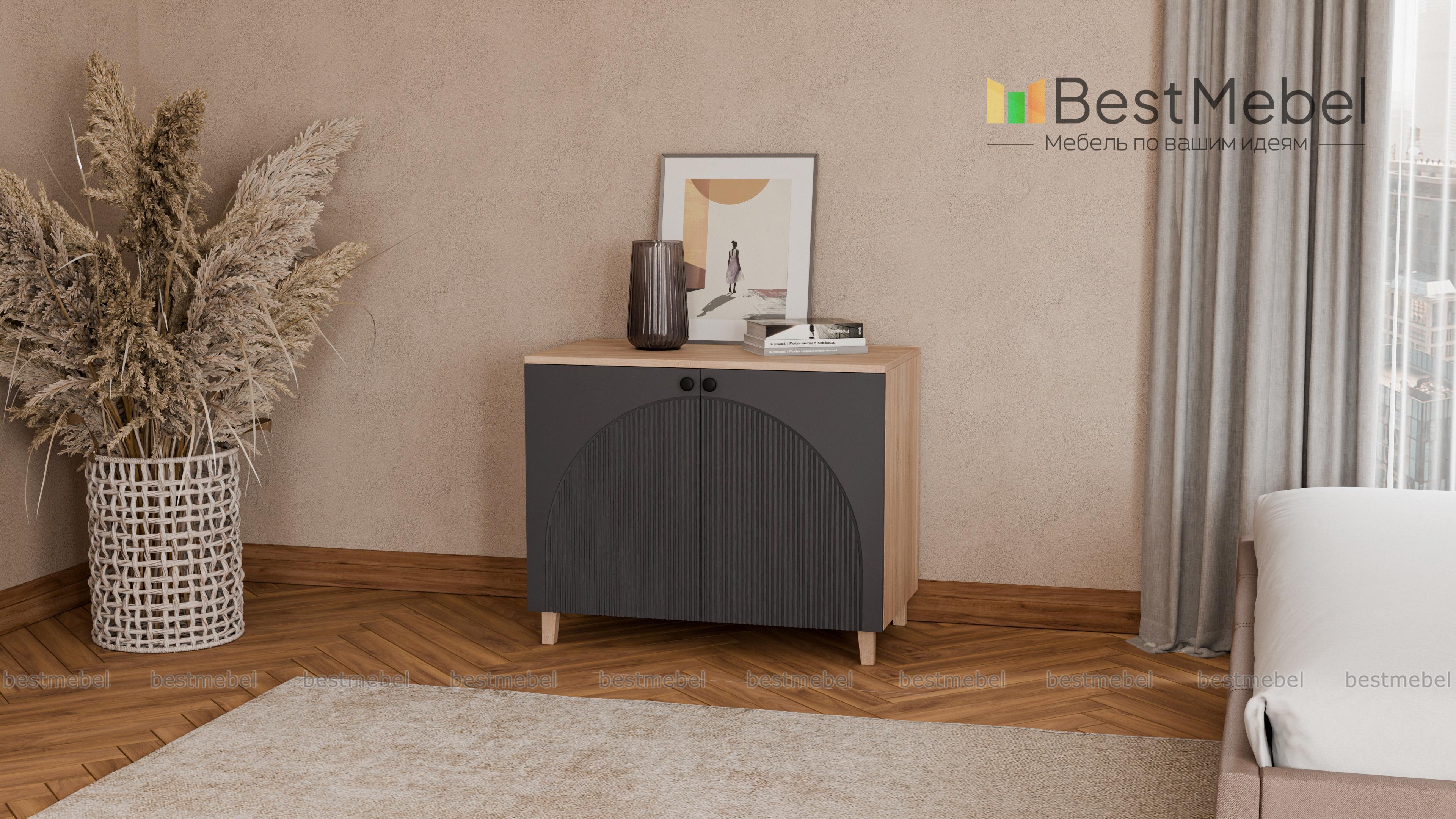 Тумба Вивьен 3 BMS современного дизайна подходит для установки в прихожих, гостиных или уютных спальнях. Универсальная распашная модель оснащена двумя дверцами с круглыми ручками и удобной для размещения светильника, декора и важных мелочей столешницей. Тумба с корпусом из ЛДСП располагается на высоких устойчивых ножках, акцентный фактурный фасад выполнен из МДФ. Купить тумбу Вивьен 3 BMS с выбором размеров, цвета и фурнитуры приглашаем к нам в интернет-магазин.