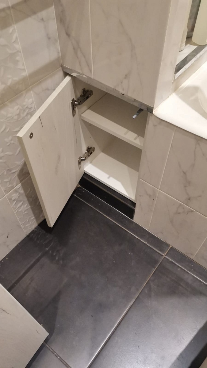 Очень часто в санузлах остаются места между самой ванной и стеной, которые хочется окультурить и закрыть дверкой. И главное - чтобы функционал тоже присутствовал. У BestMebelShop нашелся такой прекрасный шкфчик НЕО. Мы выбрали тот же материал, что основная мебель в ванной (а это дуб крафт, который я больше нигде не нашла). В результате получилась глубокая ниша, где на заднем плане можно хранить редко используемые предметы, а на переднем отлично разместились контейнеры со стиральным порошком и мылом. Полка съёмная. Спасибо всем!