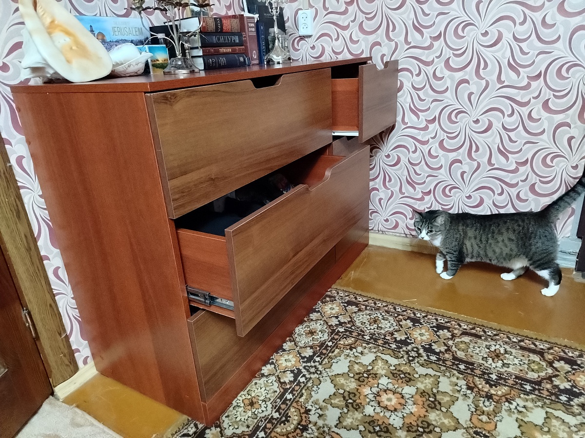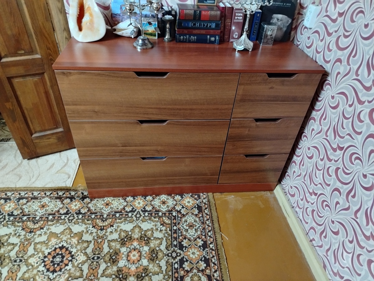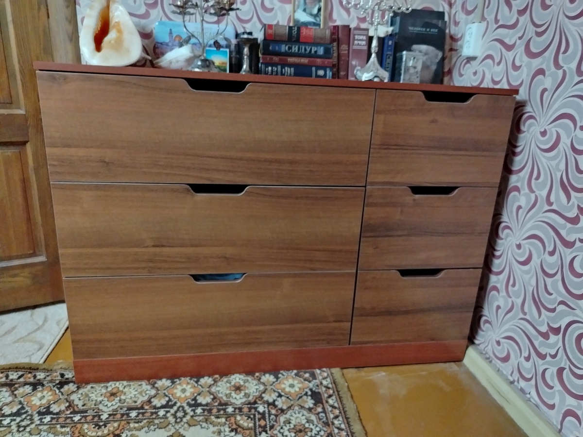 Заказ №00000863352. В целом заказом доволен . Хороший  и крепкий комод.Плохо что инструкции нет и доставка 2 раза переносилась, но сам комод понравился буду еще мебель заказывать на вашем сайте.