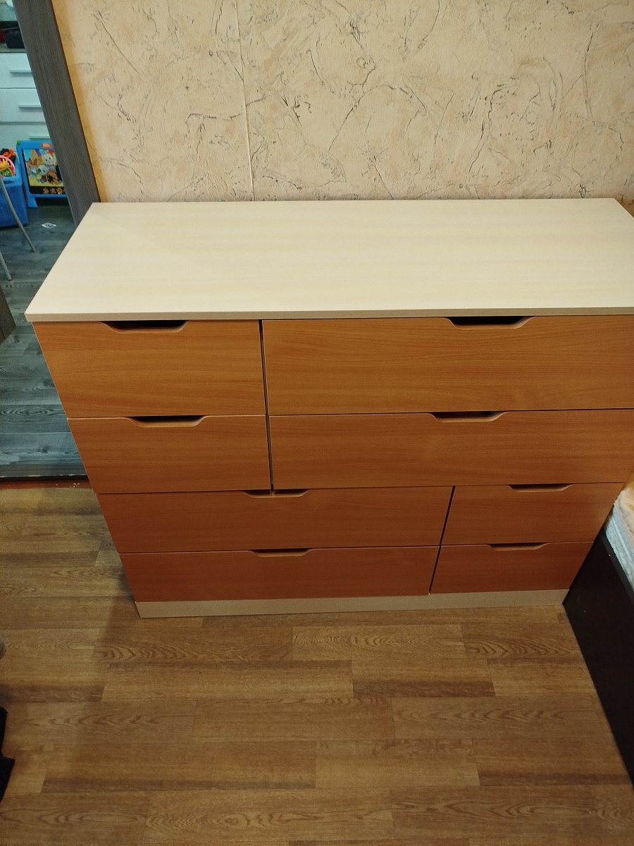 Заказ 00000867485. Приобретали комод. Нужен был длинный. Сайт очень удобный, можно выбрать и цвета и размеры. Понравилось, что есть возможность разного цвета корпуса и фасадов. Изготовили очень быстро, быстрее, чем по договорённости. Доставка вовремя. Качество хорошее, каждая деталь маркирована, легко собирается. Мы всем довольны, спасибо.