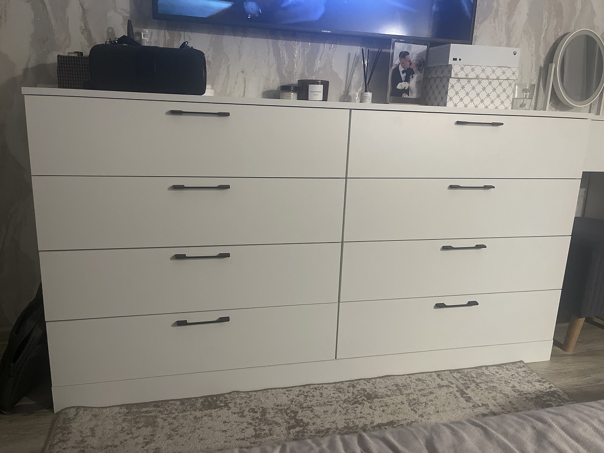 Купили мы этот комод из раздела «распродажа» за 20 тысяч. Доставка была очень веселая. Сначала привезли часть нашего комода , часть чужого , потом был довоз двух деталей , потом еще один довоз остальных… Стали собирать - комод , ящики собрали , а с механизмами push to open возникла проблема. Вызвали их сборщика. Собрал , но скидку не сделал за то что половина уже была собрана. Ну ладно , слава богу доехал и собрался 🤭. По впечатлениям- красивый , не вместительный совсем , половина не поместилось из старого икеевского комода ☹️ есть места со сколами к сожалению. Механизмы работают с усилием. Я по другому это себе представляла , ну может разработаются еще