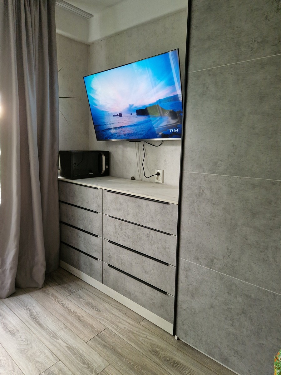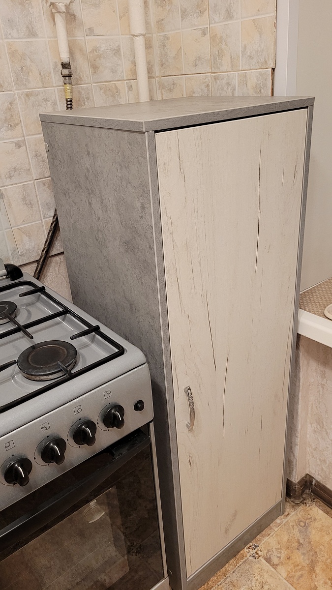Заказ 00000756582.Переехала, и нужны были на кухню новый стол и тумбочка. Хотелось, чтобы они сочетались между собой и с уже имеющимся кухонным гарнитуром, и при этом по размеру подходили. Тумбочка нужна была узкая и не слишком глубокая, и при том определенной высоты - чтобы влезла между плитой и окном в угол.Поэтому решила заказать в Бестмебель, т.к знала, что можно сделать как в конструкторе всё под свои хотелки. Изготовили всё быстро, привезли в срок.Пользуюсь и радуюсь! Очень удобная, по размерам встала идеально! Ничего не скрипит, глаз радует, и очень много всего вмещает))