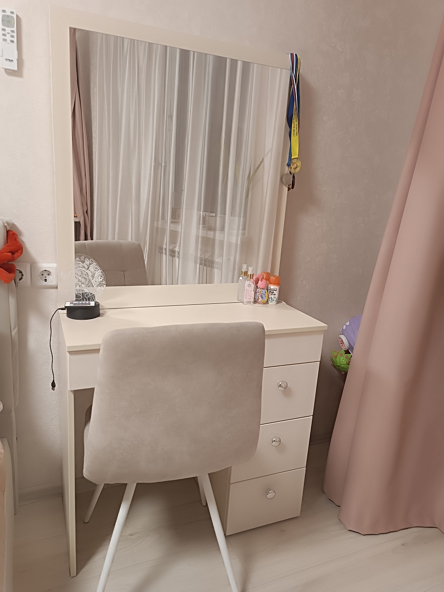 Отличный туалетный столик, заказывала дочери. Качество хорошее,доставка быстрая, сборщики собрали очень быстро. Спасибо большое за качественную мебель и вашу работу. Остались довольны!