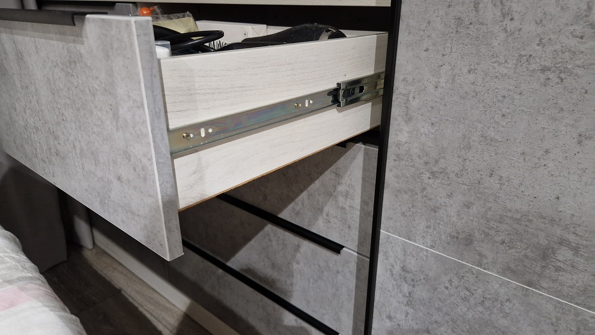 Заказ 1046921, изделие Комод Нордли Nordli 12 (1500×960×500)Отличный комод, с доводчиками, очень вместительный и при большой нагрузке ящики открываются и закрываются без проблем.В сборке не было сложностей, правда не хватает инструкции, если собираешь сам, но разобраться можно.Заказ очень быстро сделали где-то неделя и комод был уже доставлен.Разнообразная гамма цветов корпуса и фасада, подбирала именно к шкафу.
