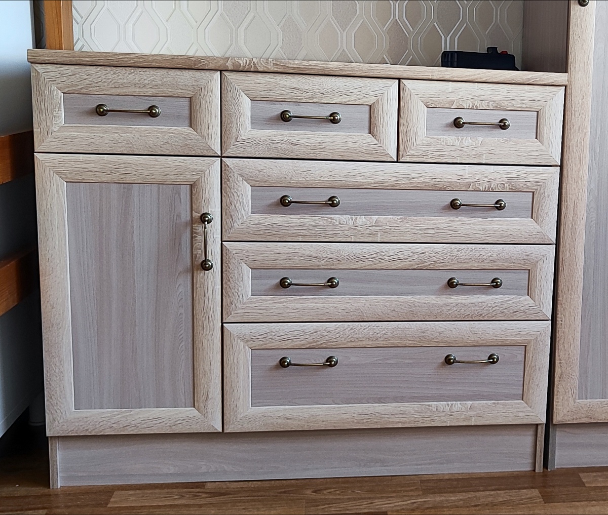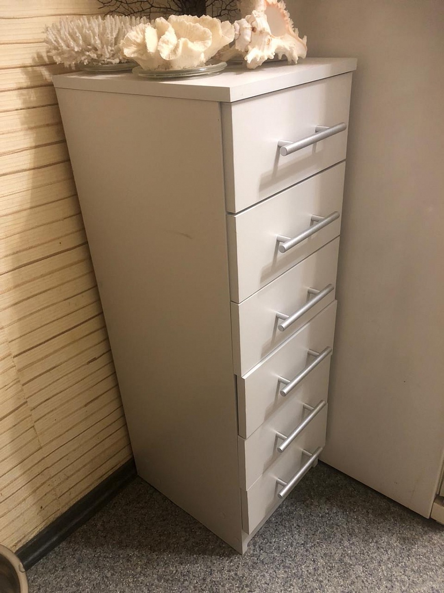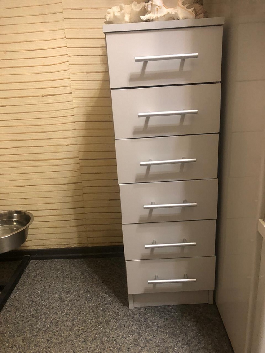 Сам комод хороший. Выполнин по размерам. Всё как надо. Но снимаю одну звезду,т.к в распошной секции на фото и на схеме комода на сайте есть внутри полка,а по факту её нет. Очень обидно.