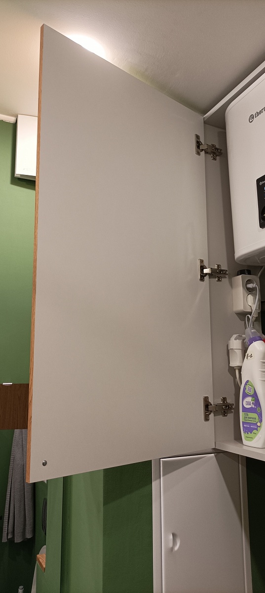 Дублирую отзыв, потому что не получилось приложить фото:Заказ 00000731012 подвесной шкаф.Заказывали по своим индивидуальным размерам и с индивидуальной конфигурацией.  Перед оплатой и изготовлением с нами согласовали эскиз. Все размеры выполнены четко, пожелания по материалам, фурнитуре и цвету учтены. Шкафом довольны, в половину без полок установили электронагреватель воды, пользуемся во время отключения горячей. Важно было чтоб шкаф вошел в простенок в ванной комнате и чтоб в его секцию вошел бойлер с разводкой - все получилось отлично.