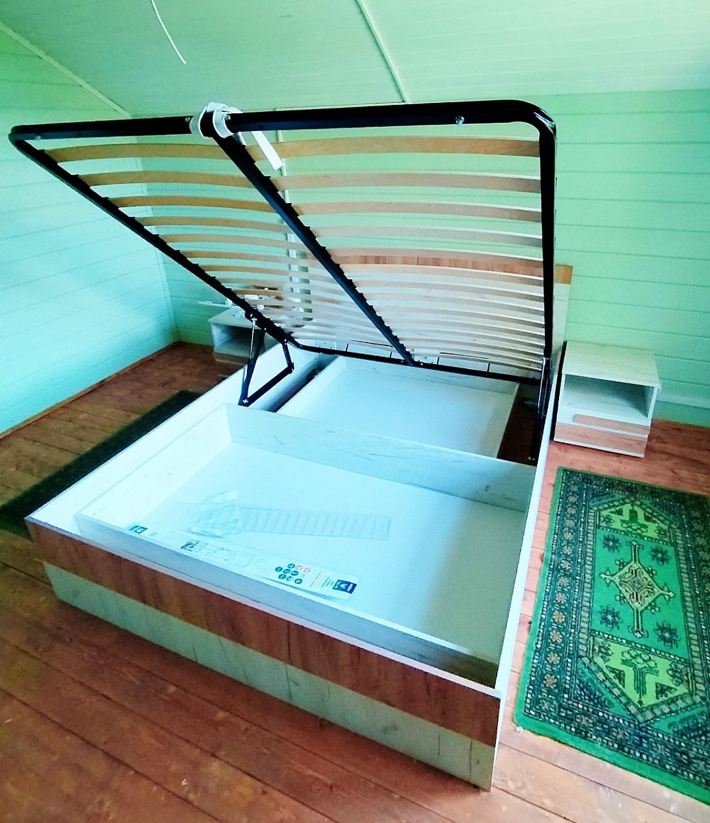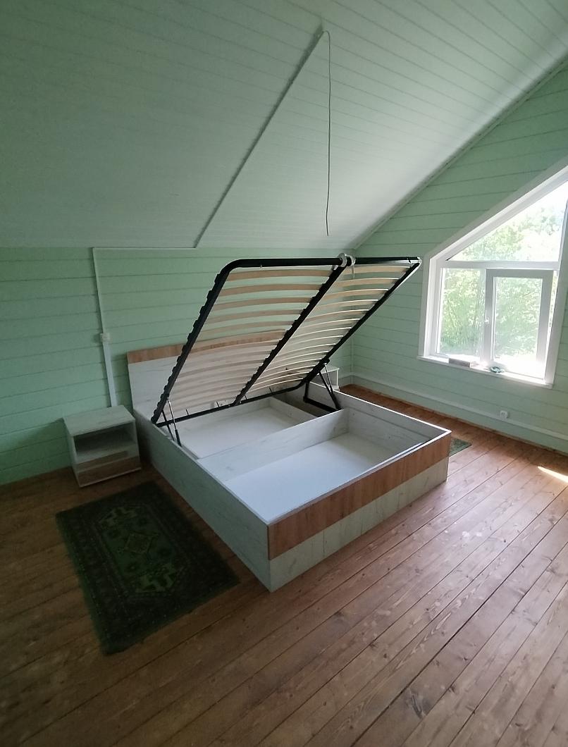 Кровать идеально подошла по конструктиву и дизайну к цветовой гамме спальни на даче, очень удобно, что встроены тумбочки.Удобная форма заказа, быстрое изготовление и доставка.