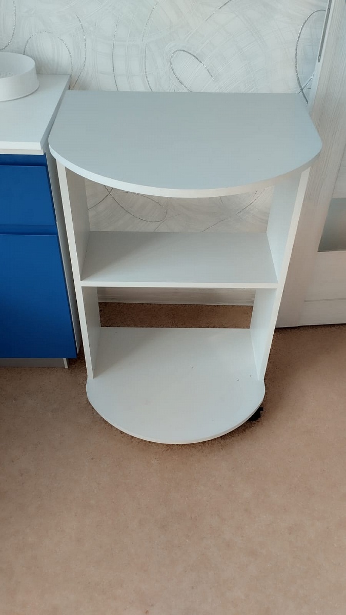 Столик  пришел  быстро, хорошо упакован, по инструкции легко собирается,  все было в комплекте( болты, гайки, колеса), очень удобен и компактен, незаменим в небольших  кухнях или гостиных. Размеры сделали те, какие указала при оформлении заказа