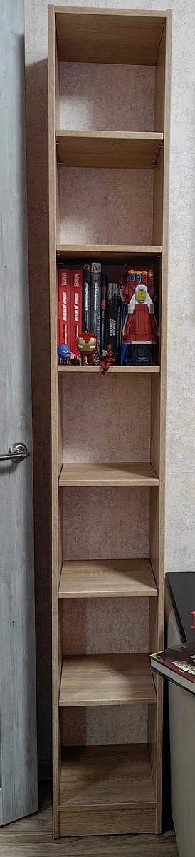 Заказ 00000267739Отличный стеллаж: крепкий, собирается элементарно. Сделали по индивидуальным параметрам, так что он идеально вписался в пространство между шкафами.