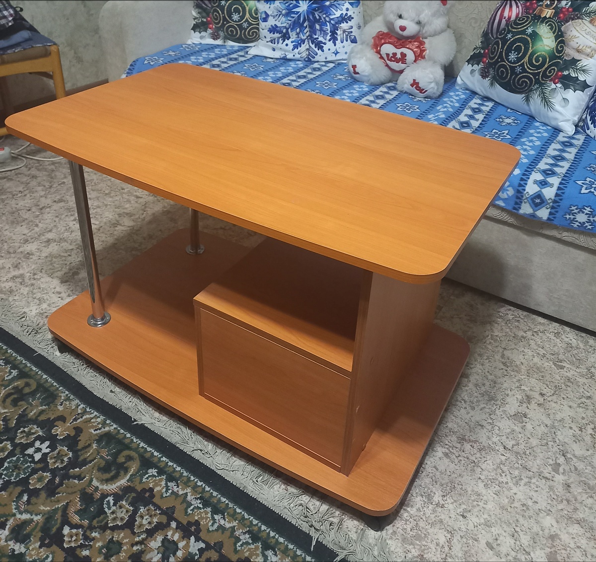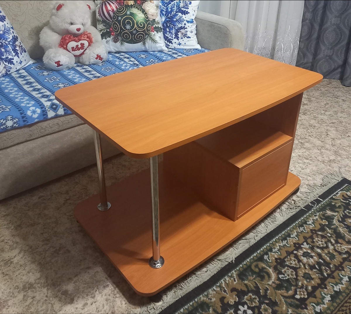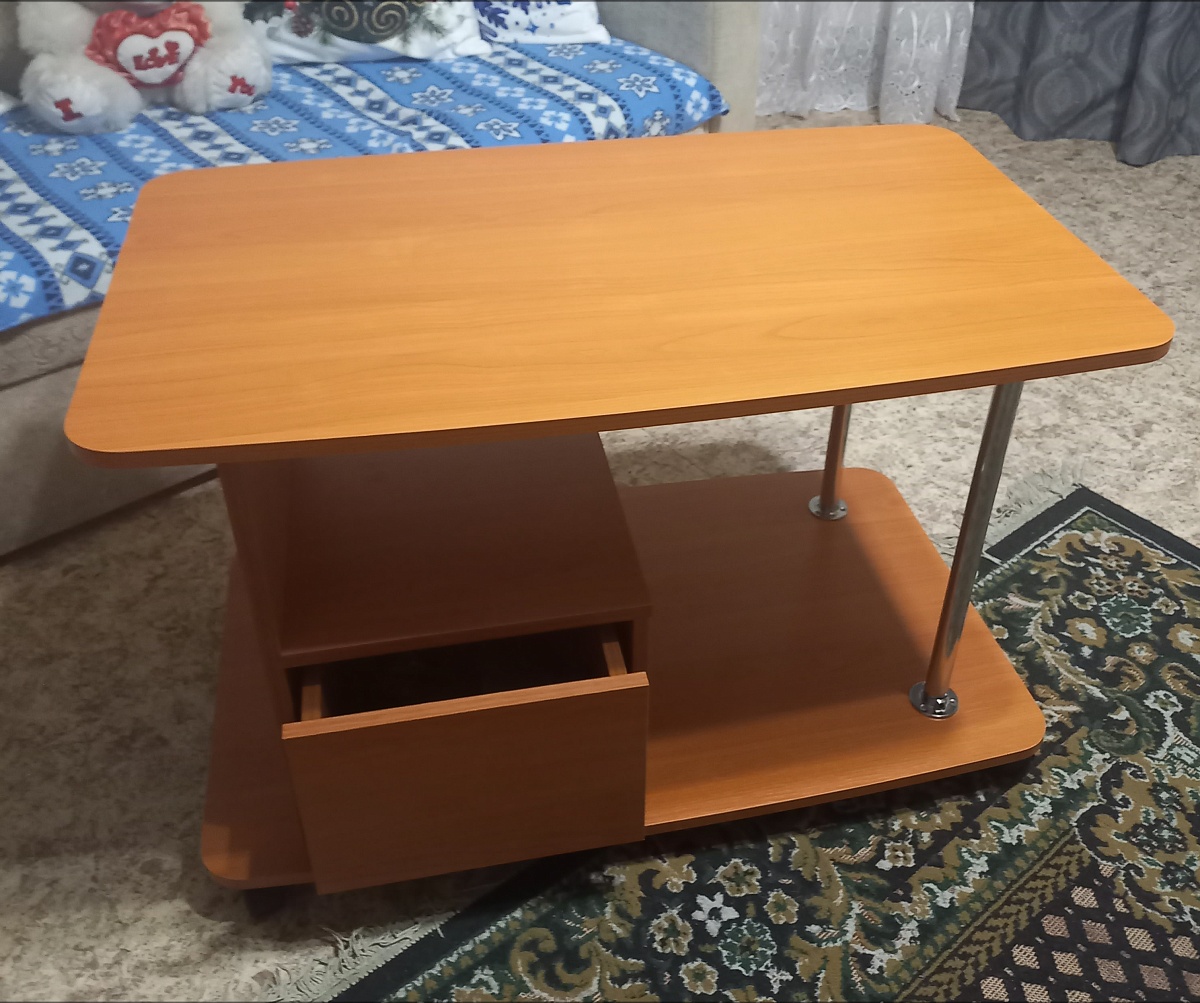 Журнальный столик Пример 162, заказ 00000265799. Качество хорошее. Комплектующие на месте. Изготовили по моим размерам и цвету. До этого заказывали другой столик и нам он не подошёл. Изготовили другой быстро и бесплатно привезли. Разницу в цене вернули сразу. Спасибо,  что пошли нам на встречу.  Вежливые операторы и доставщики.