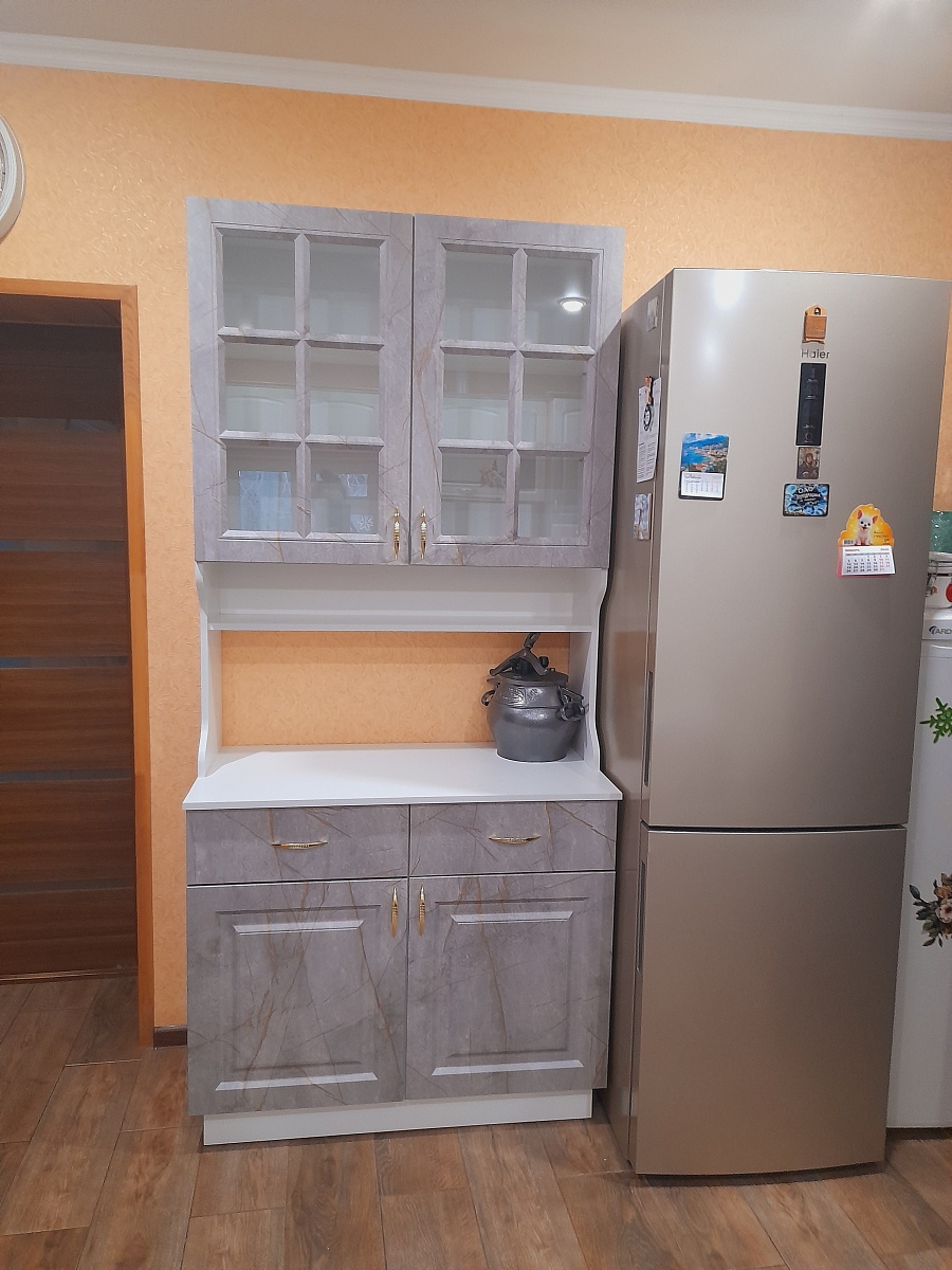 Хочу выразить благодарность этой фирме. Достойное качество, адекватная цена, доставили в срок! Еще и мои хотелки выполнили (полочки на уровне рамочки на верхних дверцах). Собирали сами, но лучше заказывать сборщика. Вообщем рекомендую всем однозначно. Я очень довольна, что выбрала ВАС!Ширина 1 метр.