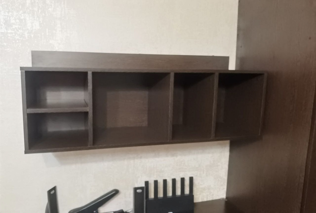 Полка замечательная. Сделали с несколькими изменениями по индивидуальному запросу на основе этой модели, цена выросла не сильно. Повесил, доволен просто до жути И вообще, BestMebel -- исключительные молодцы! Мебель качественная, точность изготовления выше всяких похвал, собирается, как конструктор Lego! Ну и вторая фотка -- немного мебели от Bestmebel, которую я приобрел за последние полтора месяца (стол, шкаф, полка).
