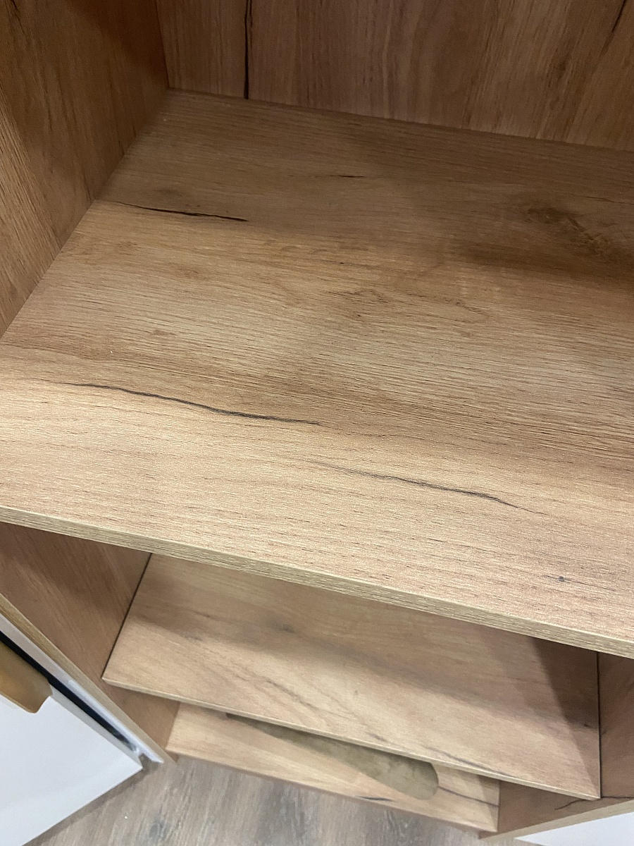 Тумба отличная, сборка простая, на каждой детали наклейка с названием и размером. Размеры соблюдены, для меня это было важно. Тумба между верхним модулем и пеналом от Бест мебель. Доставка вовремя.