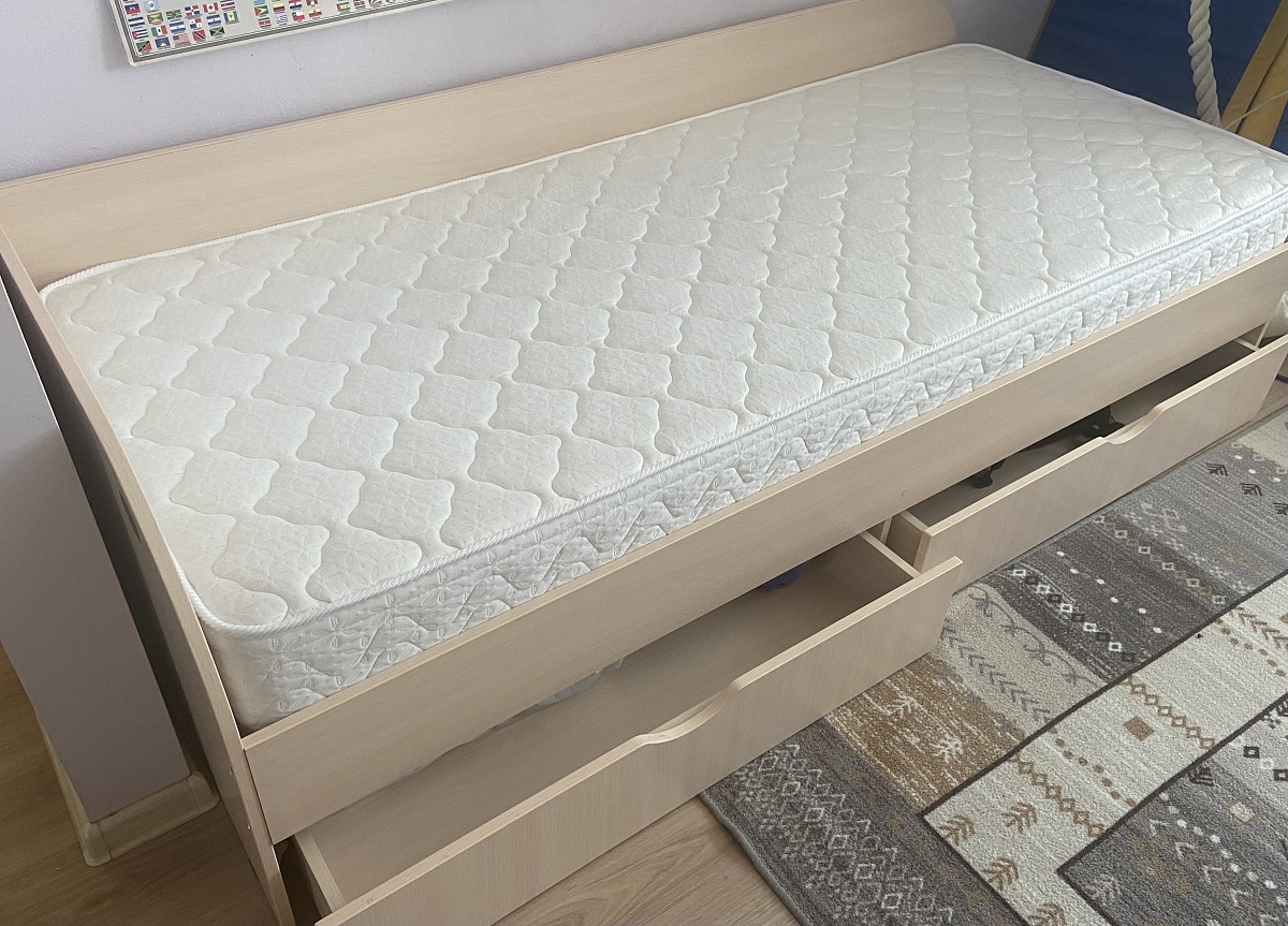 Заказ 00000126123, изделие Детская кровать Соня 2 Пихотин BMSКровать хорошего качества, сотрудник магазина помог сориентироваться по телефону по параметрам заказа, привезли в срок, цвет как выбирали, собрали сами, спать ребенку удобно, ящики вместительные на колесиках. Планируем покупать на сайте еще мебель