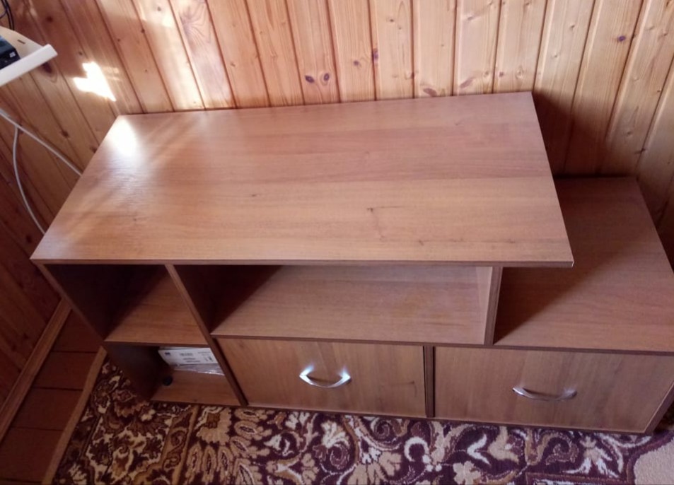 Заказывали такую тумбу на дачу (заказ №394514). Нужно было что-то вроде гибрида комода и журнального стола, и при этом не загромождать пространство в комнате. Тумба "Винница" показалась очень подходящей для этой цели.  Воспользовавшись опцией изменения параметров, сделали идеальный, на мой взгляд, вариант. Тумба получилась достаточно высокой. Радует большая площадь открытых поверхностей в свободном доступе. Вроде и простой, но оригинальный дизайн.  Она довольно массивная и крепкая. Цвет - орех Гварнери. За такую цену - совсем отлично! Уже полгода служит, все прекрасно!