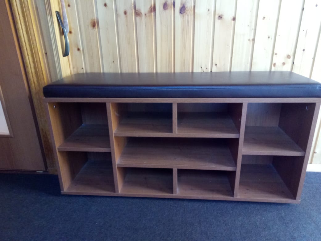 Заказывали весной на дачу такую обувную тумбу (заказ №394514). Искали максимально функциональный вариант, но при этом не очень громоздкий. Стандартной высоты 52 см вполне хватает, чтобы присесть и комфортно обуться. А можно и сумки сверху ставить. Цвет - орех Гварнери. Служит уже полгода, мы очень довольны!