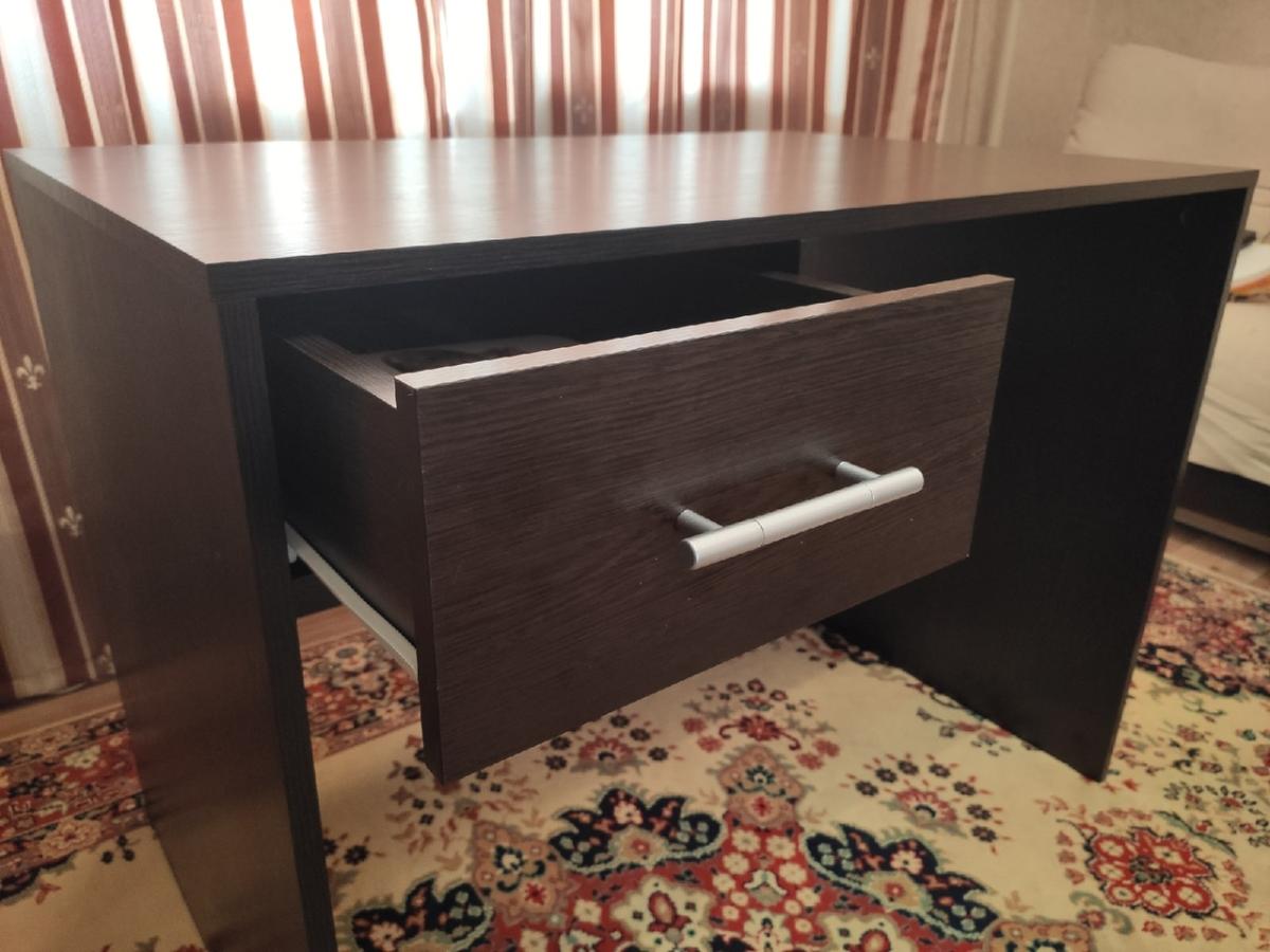 Приобретал стол для работы из дома. Небольшой, но удобный и практичный - в ящик даже помещается ноутбук. Стол полностью соответствует описанию, нареканий к комплектации и доставке нет. Все быстро и качественно. Сборка стола осуществлялась своими силами, потратил не больше часа, учитывая, что занимаюсь этим крайне редко.