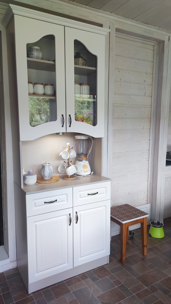 Купили буфет. Изменила стандартные цвета и петли. Стал сильно дороже. Добавила светильник (на магните из ЛеманаПро). Вписался буфет идеально. Устойчивый, не заваливается, крепко держится, не шаткий. Направляющие в ящики лучше простые ставить, а если с доводчиками хотите, то берите самые лучшие. Доводчики среднего качества не работают. Буду менять.Собирали пол-дня о онлайн схеме - очень удобно.Видимые на боковинах болты предлагают заклеить специальными наклейками, но я их лучше покрашу в цвет корпуса.В остальном, претензий нет!По дизайну вписался идеально.Доставили быстро в полной комплектации.