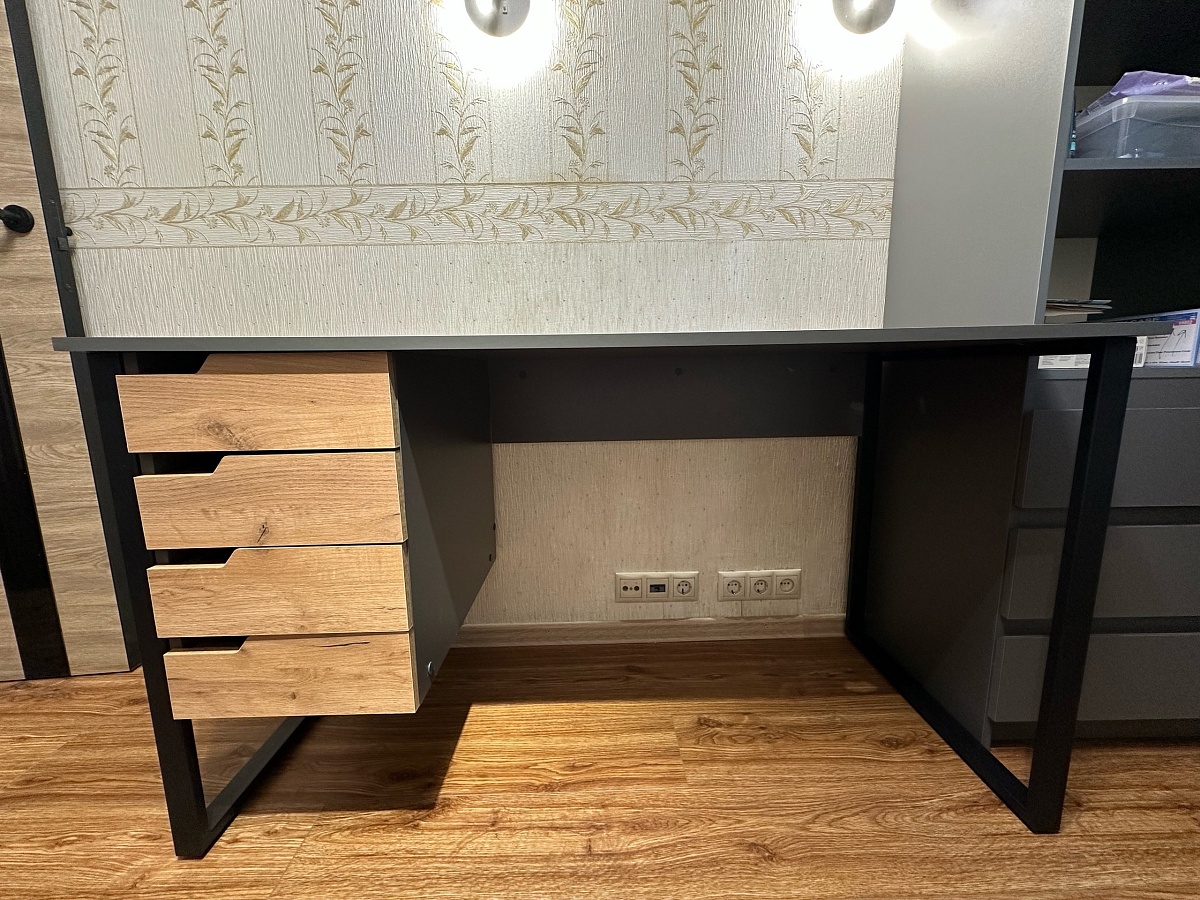 Хочу выразить огромную благодарность BestMebel за данный компьютерный стол. Долгое время искал стол подобного плана, и, облазив кучу сайтов, оказался тут. Радует возможность самому выбрать материал, размеры, расположение ящиков и отверстий. Благодаря этому удастся расставить в комнате мебель в едином стиле и с нужными под меня размерами. Приятным бонусом была бесплатная доставка в пределах МКАД. Порадовало обилие крепежа, не пришлось ездить на рынок докупать, как возникает иногда с мебелью других производителей. Иногда на сайте мне попадались комментарии, где люди жаловались на отсутствие инструкции. Лично у меня это проблем не вызвало. В комплекте идет листок с подробным расположением крепежа. При наличии хотя бы минимального опыта в сборке мебели проблем возникнуть не должно. Если мебель подобного плана никогда не собирали, лучше доплатите за сборку.
