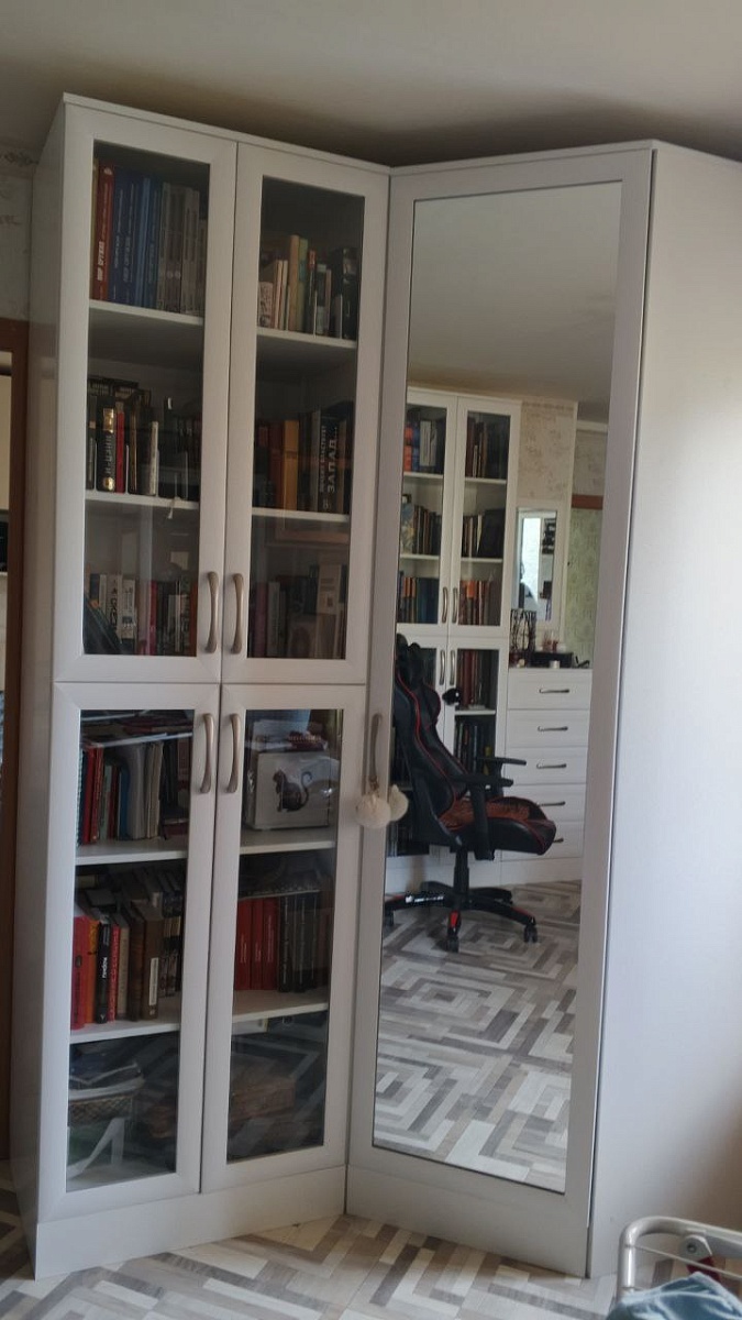 Нужен был угловой шкаф в комплекте с книжным шкафом. У всех других магазов не получалось сделать ширину шкафов одинаковую. У Бест-мебель получилось. Они отлично смотрятся рядом!
