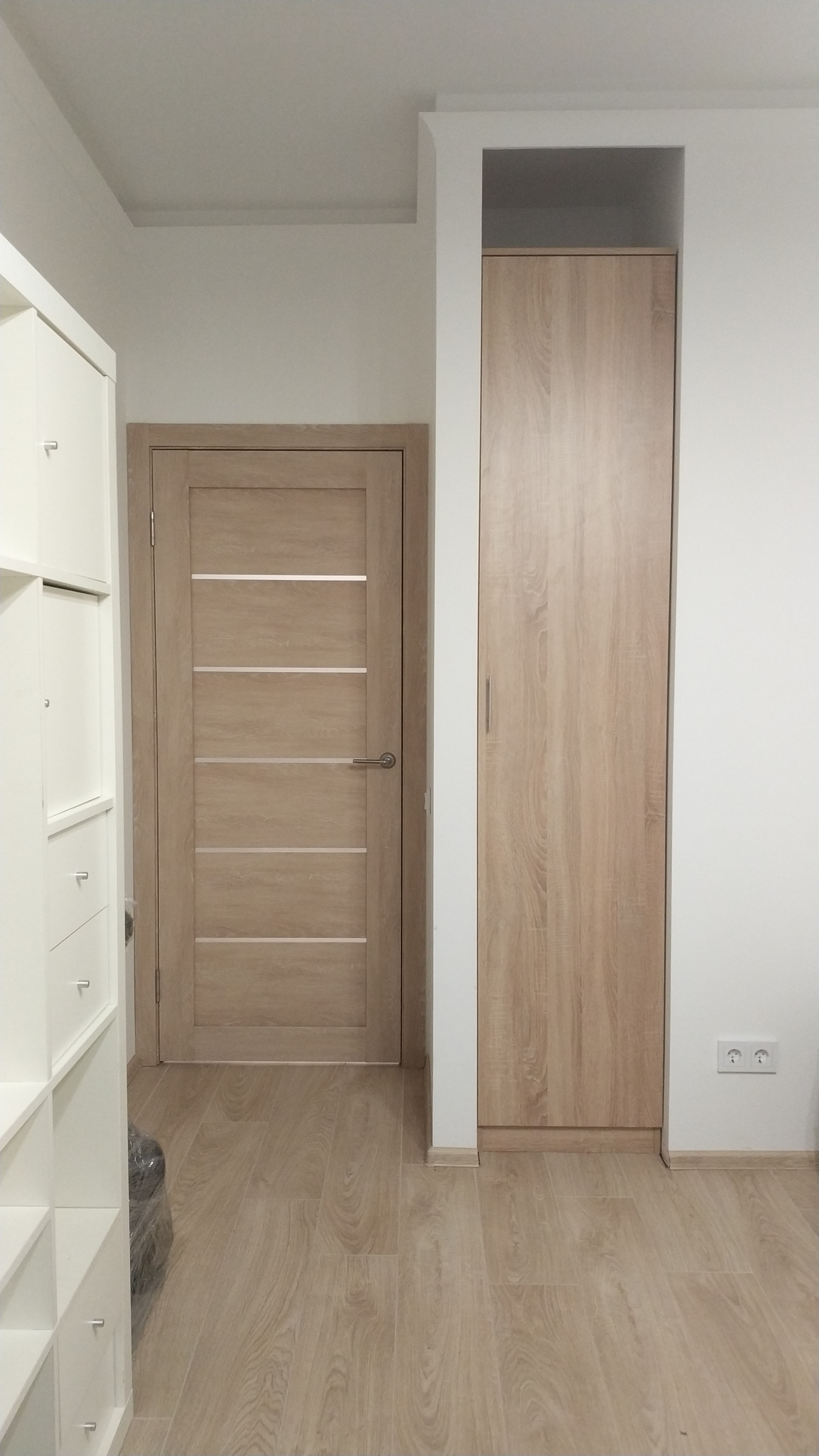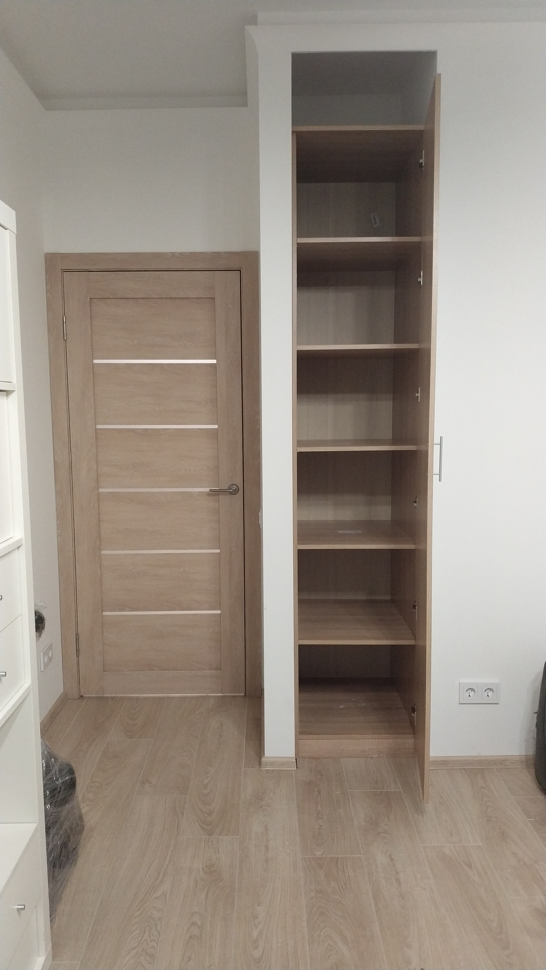 Заказывали шкаф в нишу. Встал идеально. Муж собрал сам. Цвет заказывала под двери - Дуб Сонома, совпал абсолютно. Рекомендую.