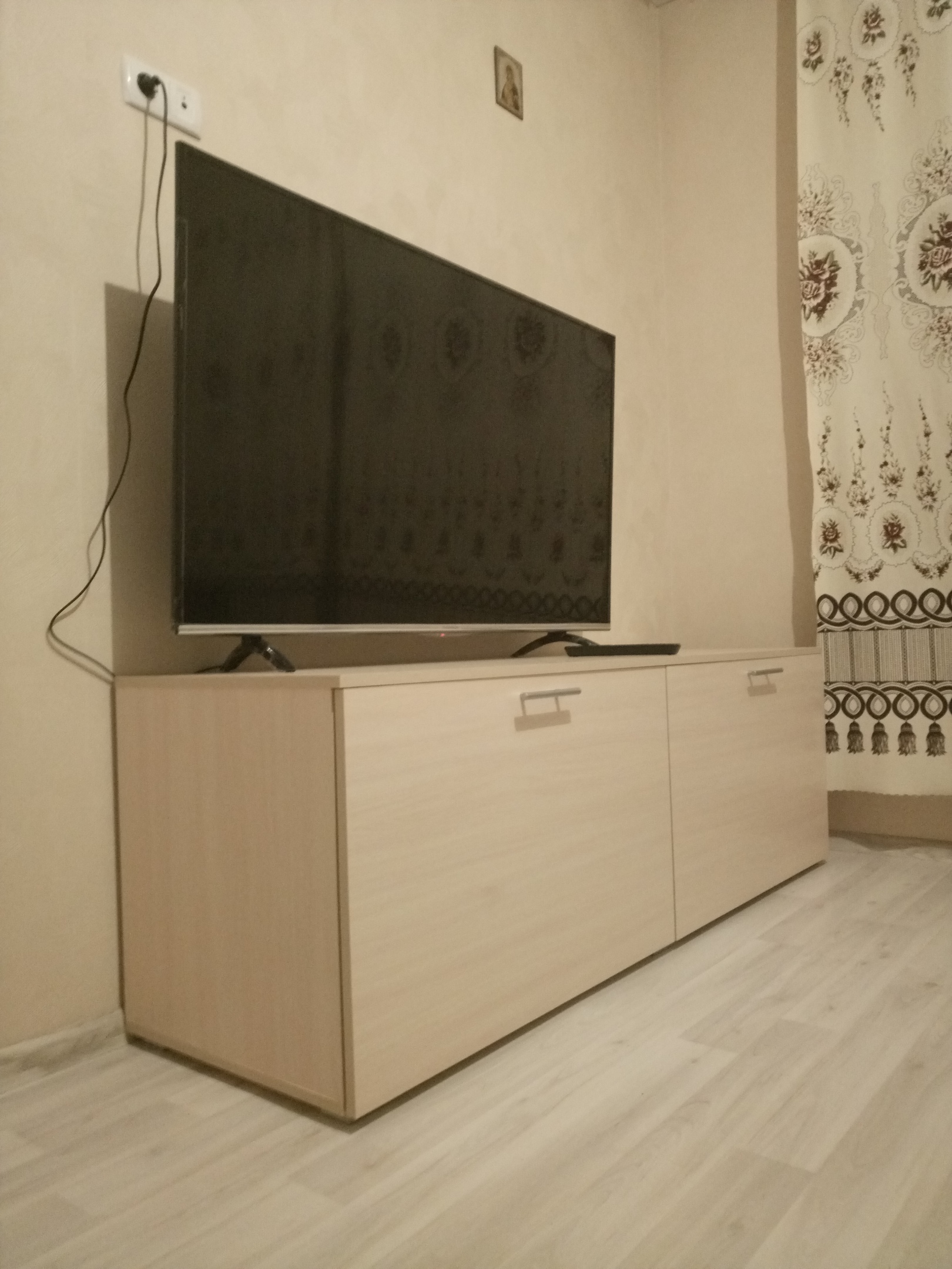 Огроооомная тумба, просто шикарно. Телик 55 дюймов вписывается легко.Половина вещей влезла без проблем.Очень удобно, что можно устанавливать свои размеры, цвет и даже типы ручек. В итоге чуть ли не вся мебель из вашего магазина - заказы разные, а за счет возможности ставить свои критерии, выглядит как единый набор.Вы молодцы, доволен всем.(Заказ 00000196055)