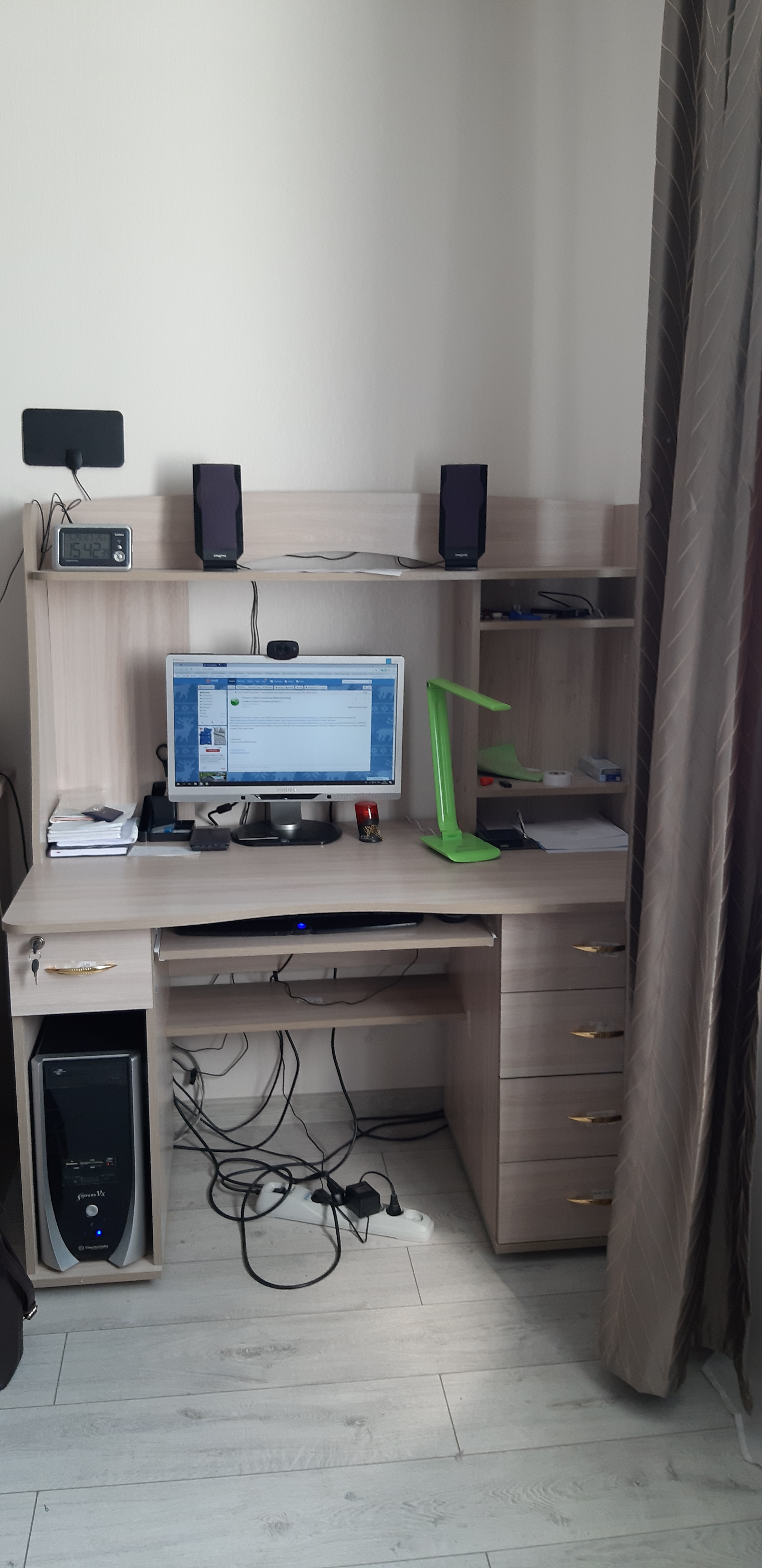 Заказал компьютерный стол домой, внешне очень прекрасно вписался в интерьер квартиры (так как вся основная мебель была куплена в БМШ, то оттенок цветов друг от друга не отличался и гармонировал с другими изделиями). Компьютерный стол очень удобный - есть все необходимое: и ящики для хранение документов, бумаги, канцелярии и большая рабочая зона (можно использовать как письменный стол), и специальная невидимая внизу полочка под небольшой принтер, и выдвижная подставка для мышки и клавиатуры. Для особо "секретных" документов есть отделение, закрывающееся на замок. Покупкой очень доволен - служит верой и правдой.